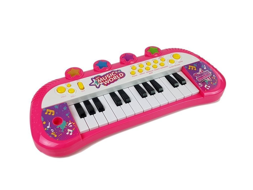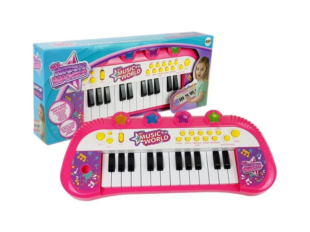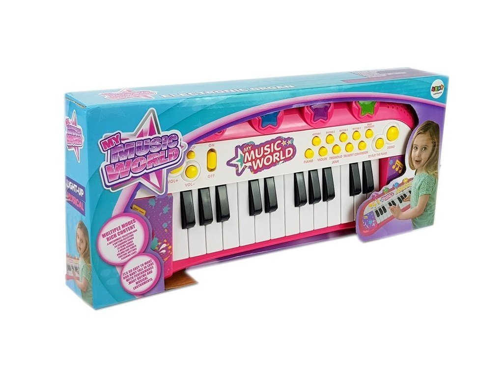 Prezentované piano má 24 kláves. Dívčí piano se vyznačuje nápadnými růžovými a fialovými barvami a zářícími hvězdami ve 4 různých barvách. Varhany jsou vyrobeny z certifikovaného, pevného, nejkvalitnějšího materiálu, díky čemuž získaly certifikát CE. Nad bílými a černými klávesami je řada barevných, různých tlačítek , která aktivují senzační efekty a funkce.
