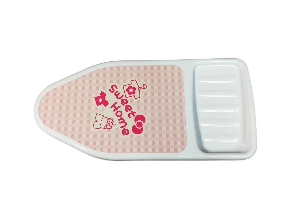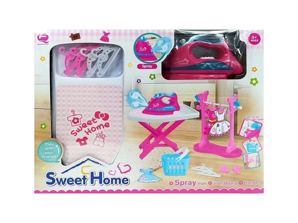 Růžovou sadu žehličky lze vzhledem ke své velikosti a váze směle nazvat miniaturní obdobou skutečných spotřebičů. Žehlička napájená třemi AA bateriemi je dostatečně lehká, aby s ní dítě manipulovalo, a přesto dostatečně těžká, aby vyvolala dojem, že používá skutečné vybavení. Téměř 40 centimetrů dlouhé žehlicí prkno má realistický výřez, kam lze žehličku odložit, když se nepoužívá. Sada obsahuje také přenosnou šatní skříň, šatičky a věšáky na hračky a košík, do kterého můžete umístit přenosné předměty.