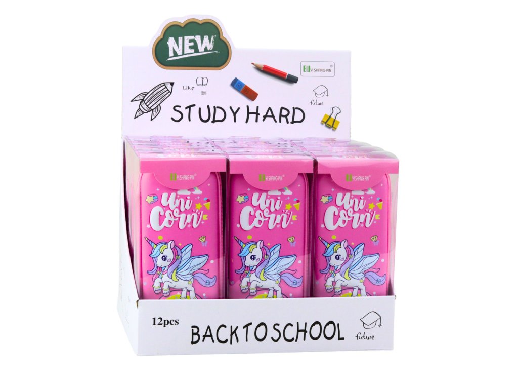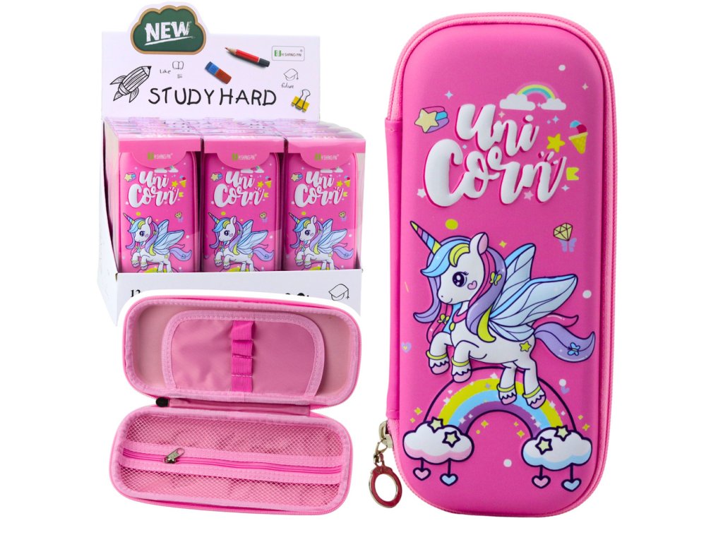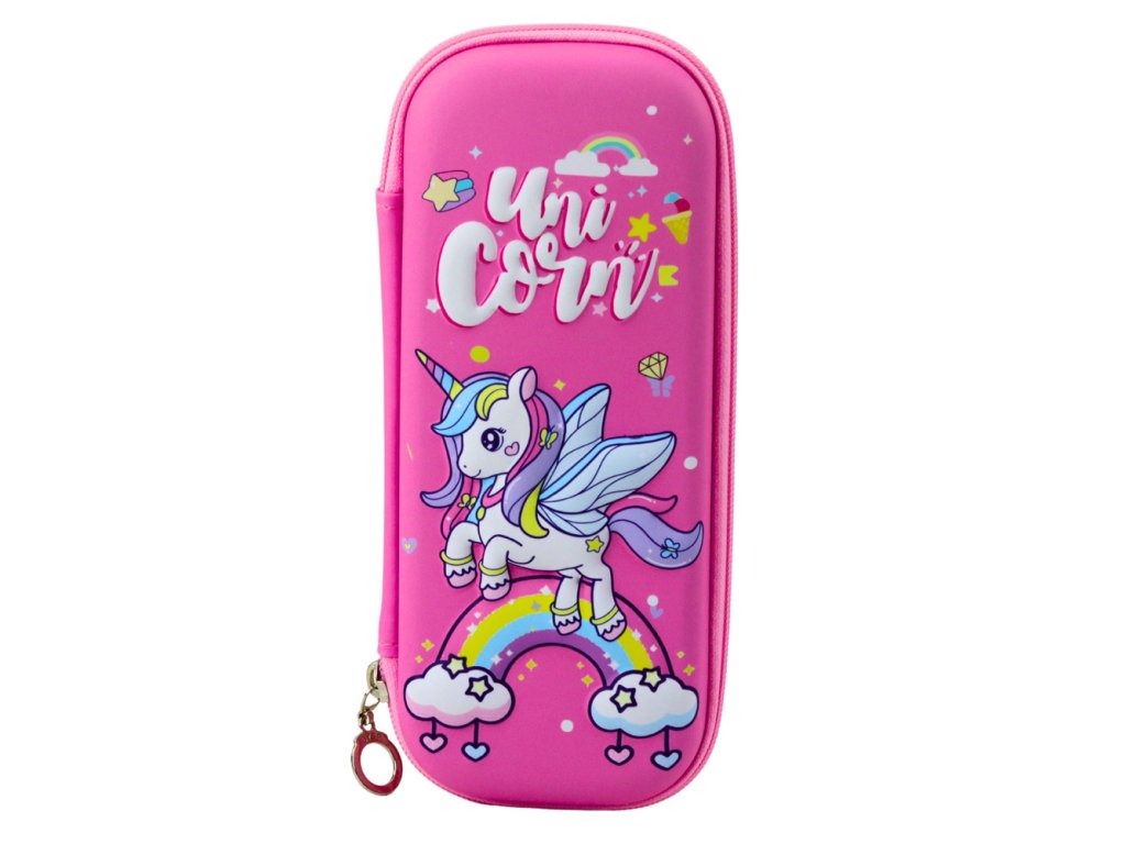 Růžové jednorožčí tuhé školní pouzdro 22,5x10 cm