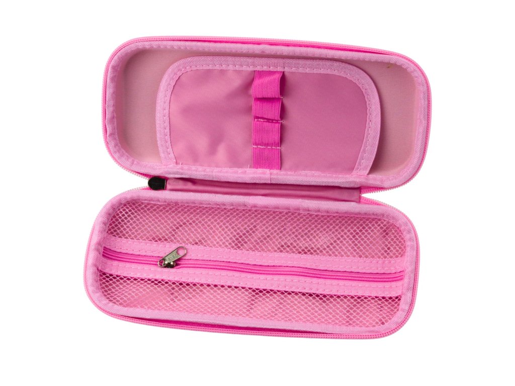 Vnitřek pouzdra byl navržen pro maximální uživatelský komfort – najdete zde flexibilní držáky na pera a tužky a také síťovanou kapsu na zip, která je ideální pro uložení drobností, gum nebo ořezávátek. Celé pouzdro je laděno do zářivé růžové barvy s okouzlujícím potiskem jednorožce, který potěší každé dítě.