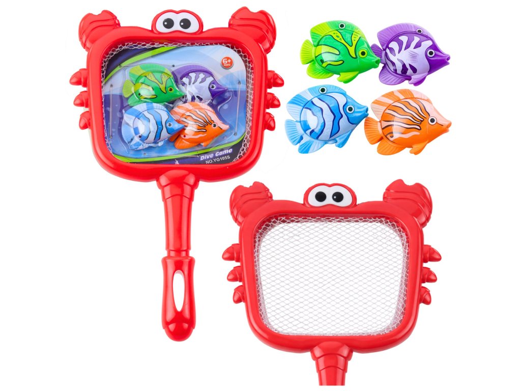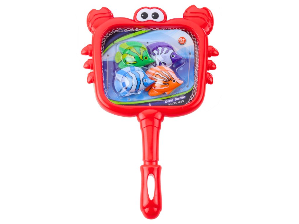 SADA NA RYBÁŘE DIVE GAME - SÍTKO S KRABEM - BAREVNÉ RYBKY PRO HRY U VODY