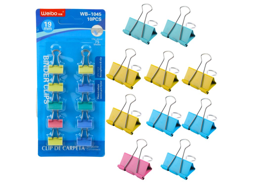 - 10 ks kovových kancelářských spon 19 mm v různých barvách