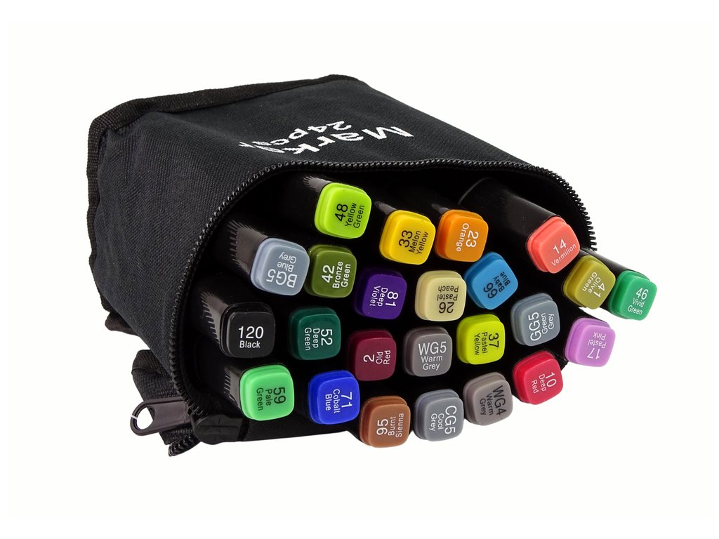 Tato sada 24 fixů v rozmanitých a sytých barvách je pro každého, kdo s kreslením začíná, a pro ty, kteří kreslí každý den. Výborná pigmentace alkoholového inkoustu obsaženého ve fixech zaručuje, že kresby jimi vytvořené budou jasné, syté a dlouho nevyblednou.