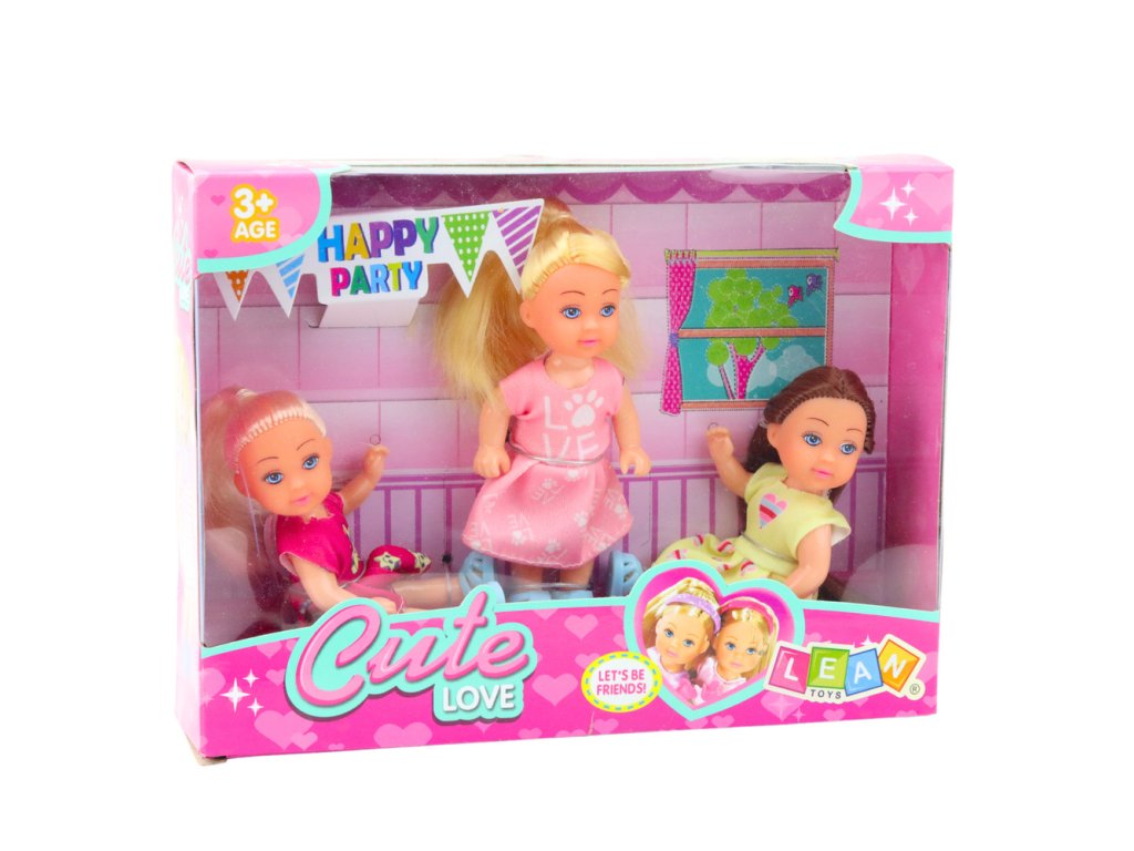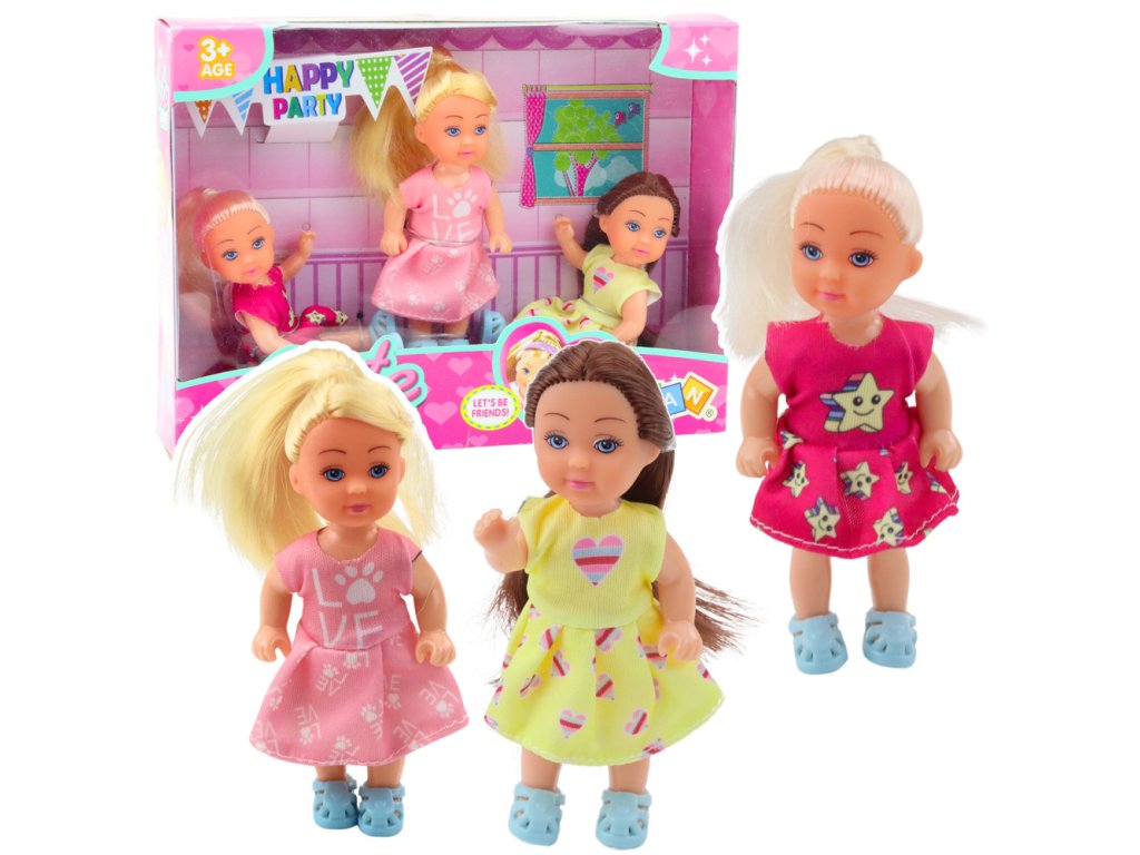 Sada tří jedinečných panenek, ideální pro kreativní hru a rozvíjení dětské fantazie. Každá panenka byla navržena s důrazem na detail – od jedinečné barvy vlasů, přes ozdobné šatičky, až po ladící modré botičky. Panenky jsou připraveny na narozeninovou oslavu, která inspiruje k hraní rolí a zábavě ve společnosti. Skvělá volba pro malé milovníky hraní house a módy.