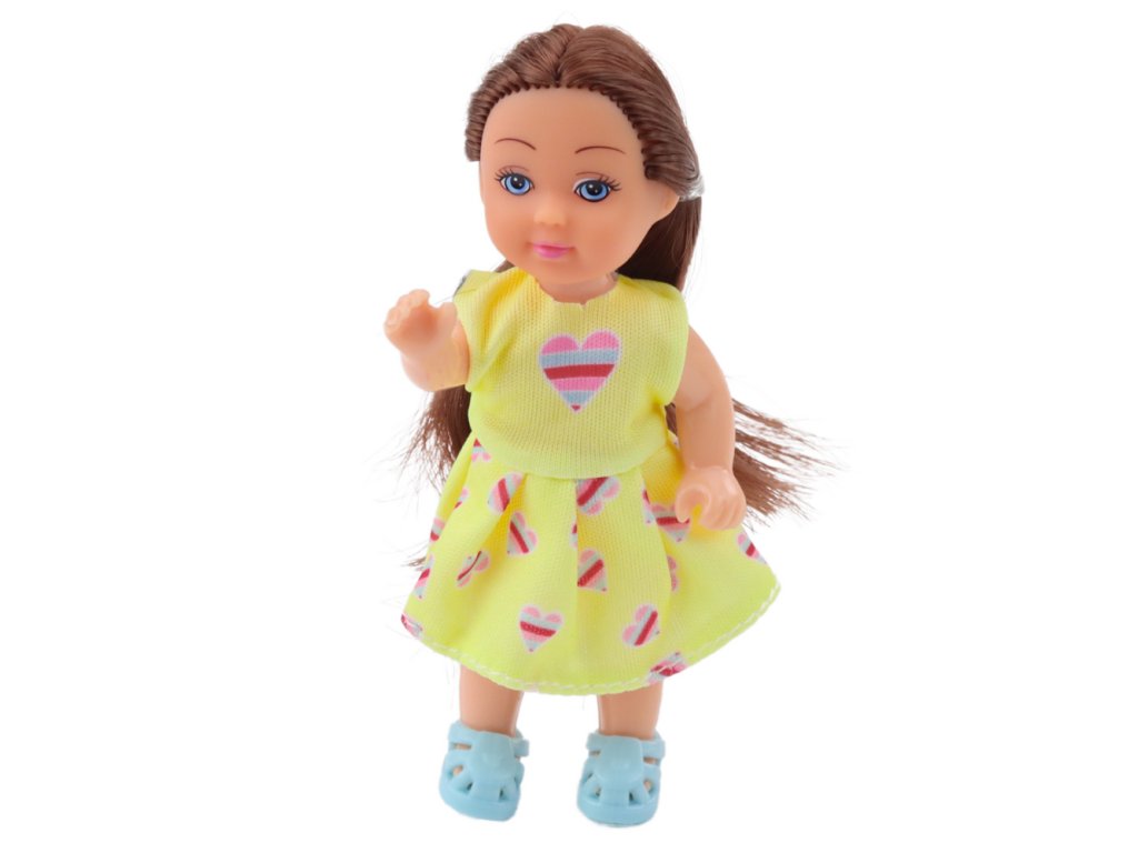 Panenka s hnědými vlasy ve žlutých šatičkách se srdíčky