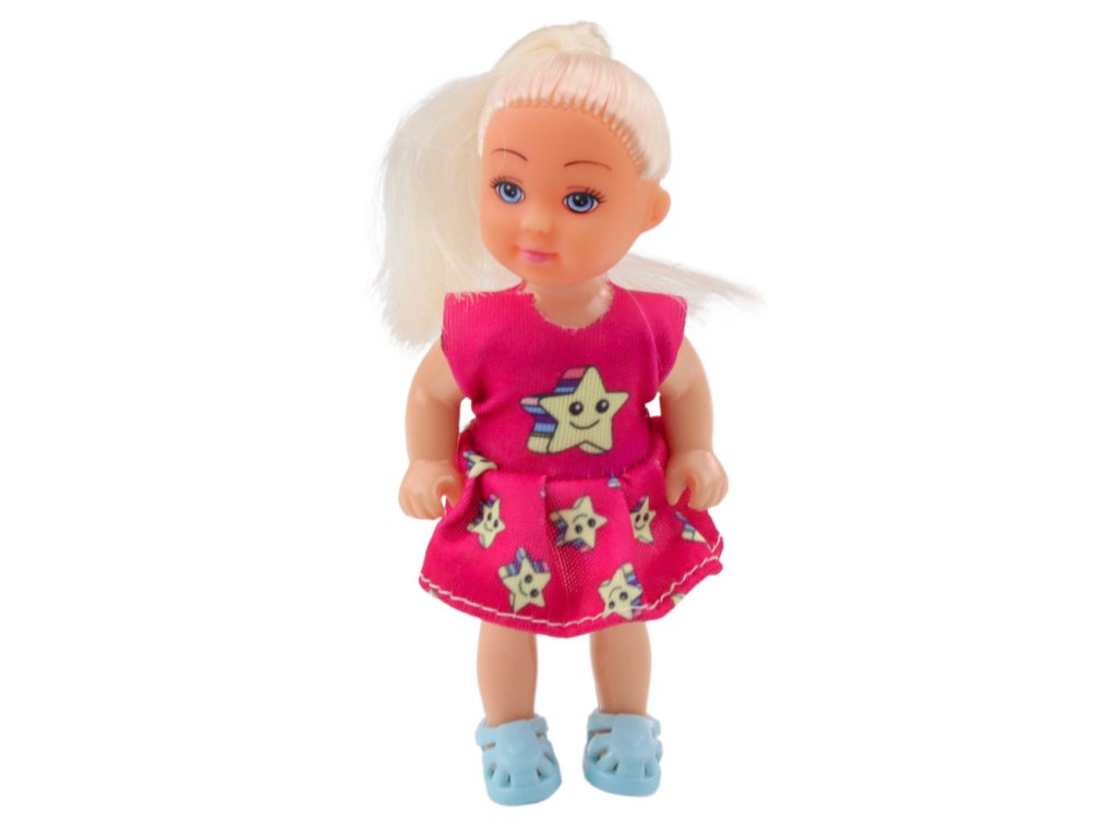 Panenka se světlými blond vlásky v tmavě růžových šatičkách s hvězdičkami