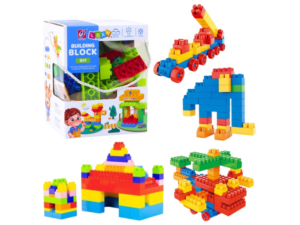 Tato 100dílná stavebnice je ideální pro děti, které milují tvořit, experimentovat a popustit uzdu své fantazii. Různorodé tvary a zářivé barvy – červená, žlutá, modrá a zelená – jim umožňují stavět domy, vozidla, zvířata a nápadité stavby podle vlastního designu.
