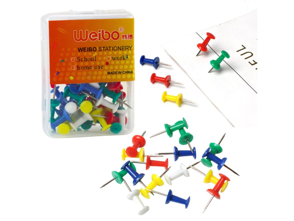 Sada obsahuje 40 připínáčků umístěných v kompaktní, průhledné plastové krabičce, která chrání obsah před ztrátou a usnadňuje skladování. Ideální pro použití ve škole, kanceláři i doma.