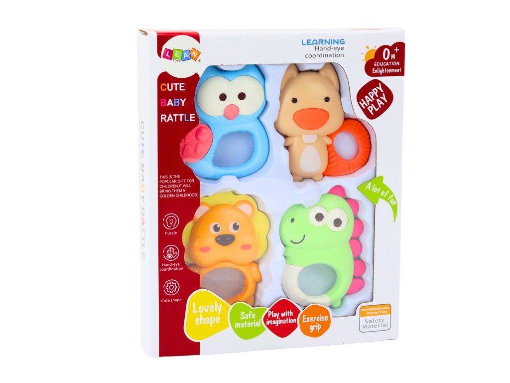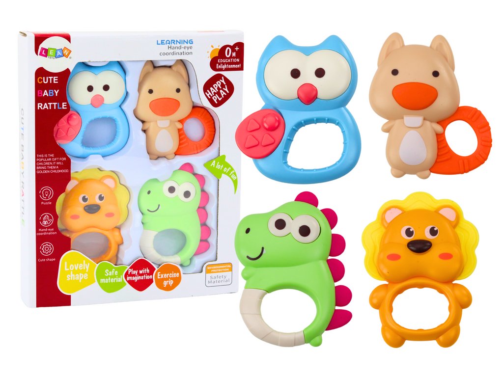Sada dětských chrastítek je ideální volbou pro každé dítě, které právě objevuje svět her. Sada obsahuje čtyři chrastítka, z nichž každé má jedinečný tvar připomínající roztomilá zvířátka, jako je lev, veverka nebo sova. Každé chrastítko je pečlivě vyrobeno z materiálu bezpečného pro děti v jemných pastelových barvách, které jsou příjemné na pohled a zároveň stimulují smysly dítěte.