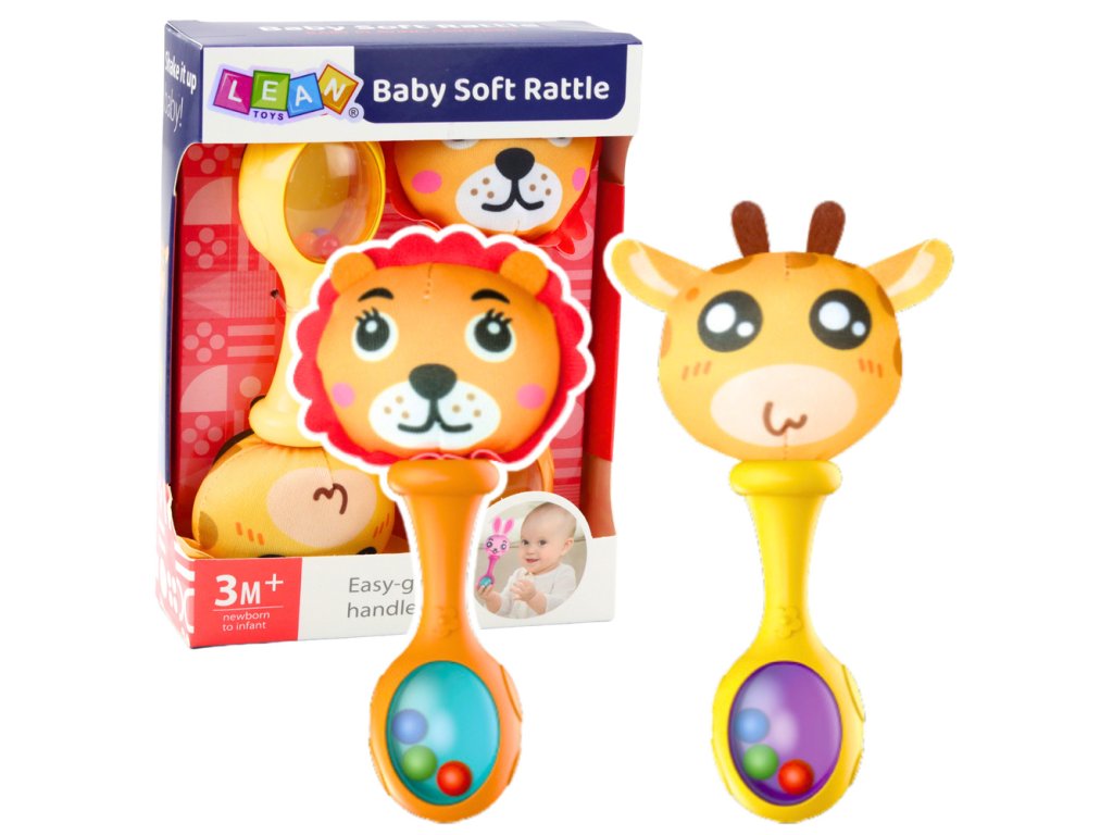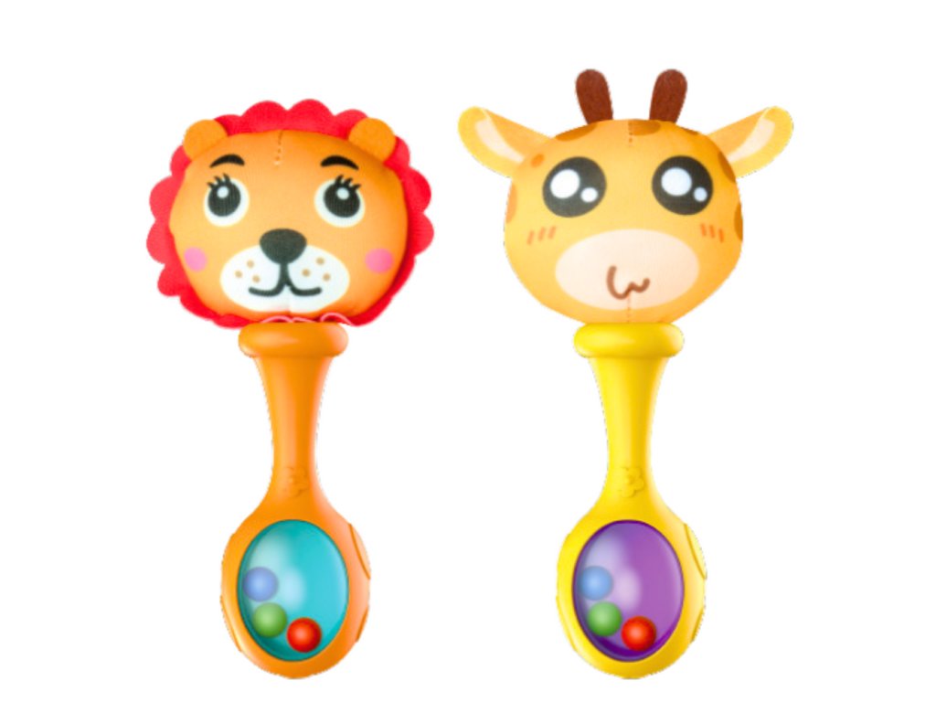 Sada chrastítek je výbornou volbou pro nejmenší děti. Každé chrastítko bylo pečlivě navrženo s ohledem na potřeby vyvíjejícího se batolete – má ergonomický tvar, který usnadňuje uchopení, lehkou konstrukci přizpůsobenou malým ručkám a měkkou, na dotek příjemnou textilní úpravu. Živé barvy a pěkné vzory ve tvaru zvířátek - lev a žirafa - okamžitě přitahují pozornost dítěte, stimulují smysly zraku a emocionální zapojení.