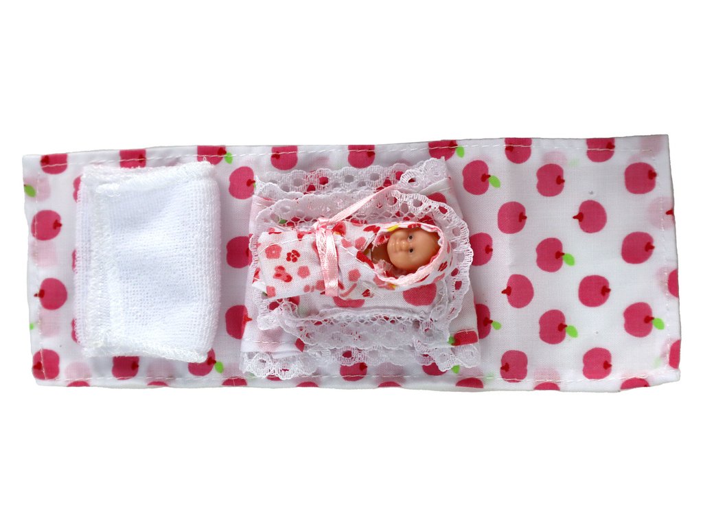 Set obsahuje kromě panenky Lucy a jejích těhotenských šatiček i druhé miminko, které je starší, má dlouhé hnědé vlásky a je oblečené v rozkošných červených šatičkách s bílými puntíky.