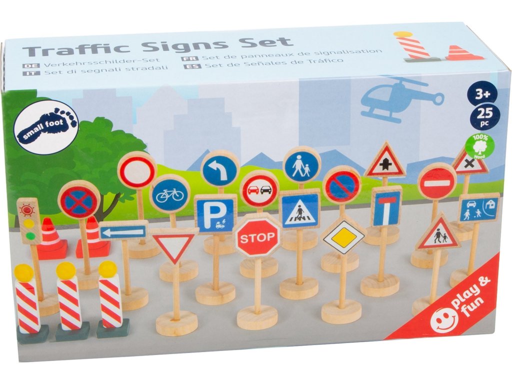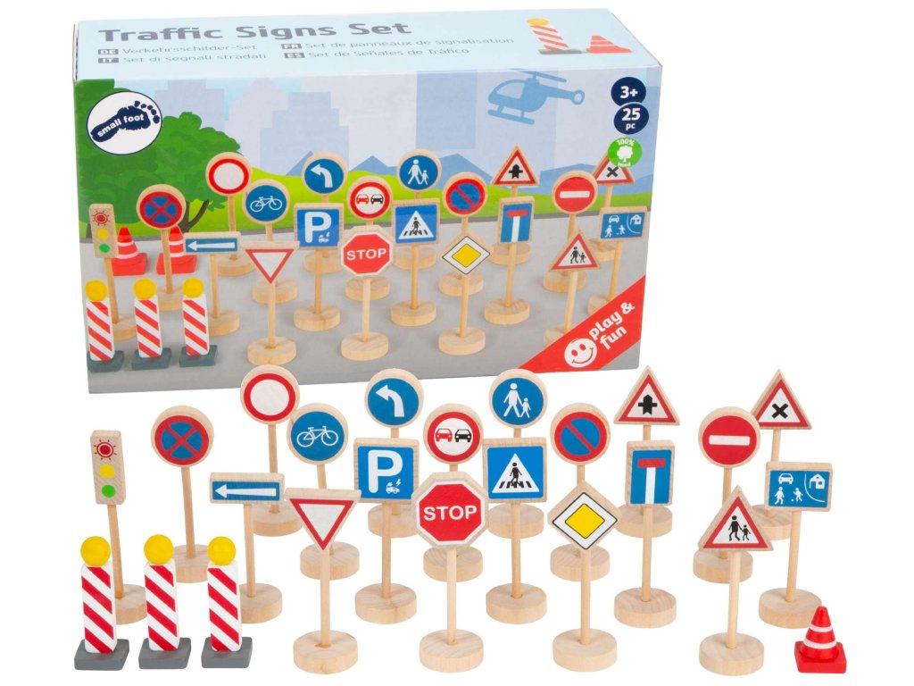 Vytvořil Small Foot -značka německé společnosti Legler, která se již téměř 30 let zabývá navrhováním a výrobou dětských hraček.Sada obsahuje 25 dílků vyrobených z dřeva. Značky a příslušenství obsahují položky jako např: stop, příkaz k odbočení vlevo, zákaz předjíždění, přednost v jízdě, přechod pro chodce, parkoviště, sloupky, semafor, zátarasy a další.