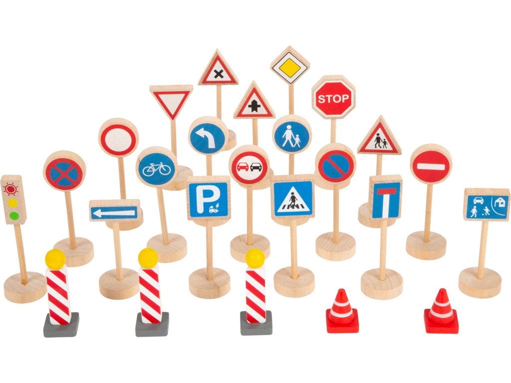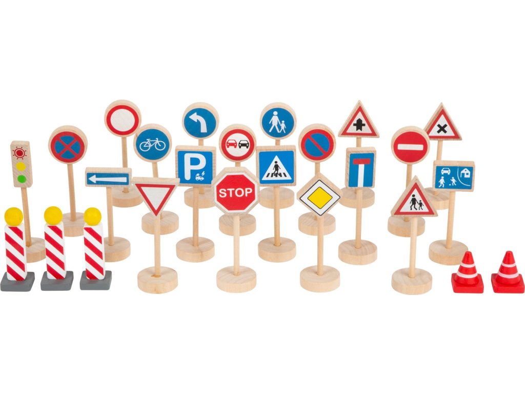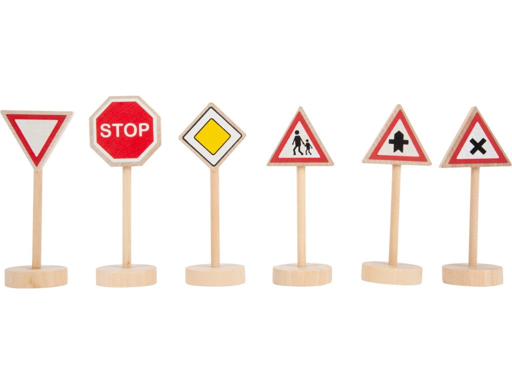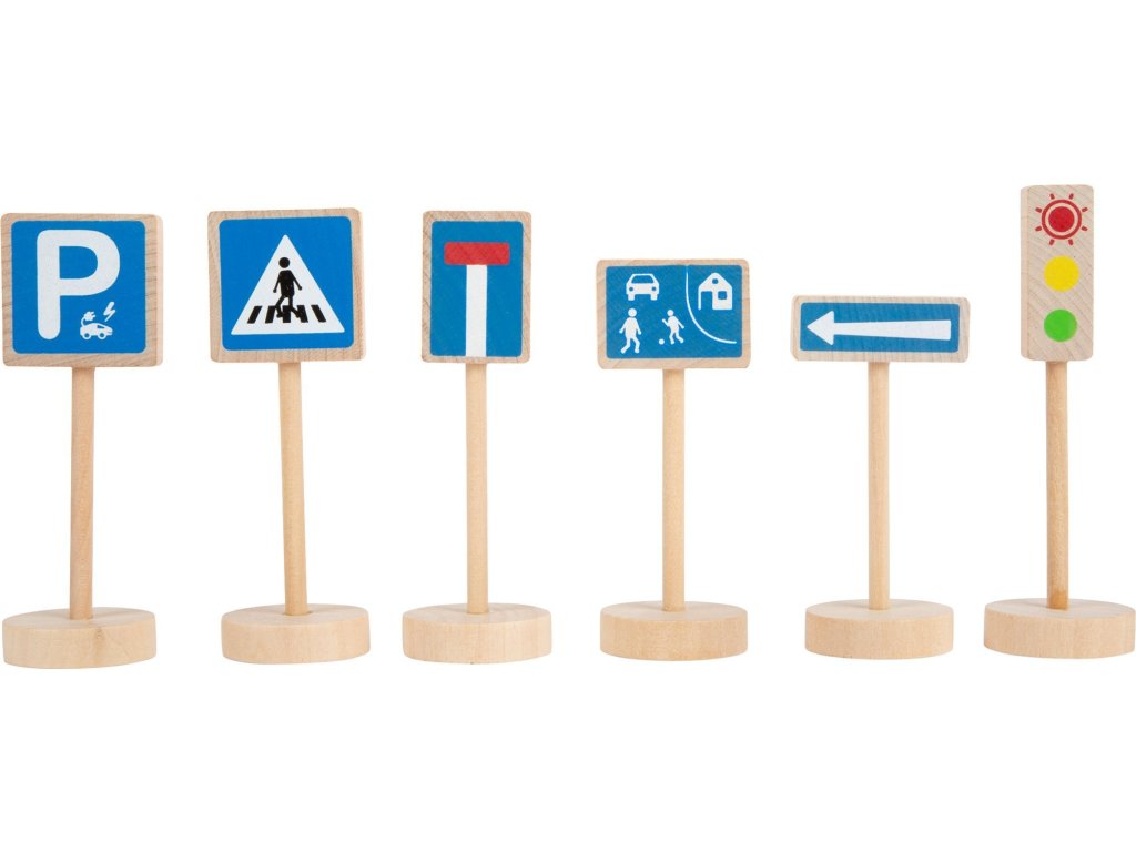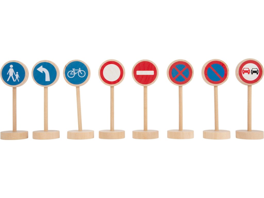Sada dřevěných dopravních značek