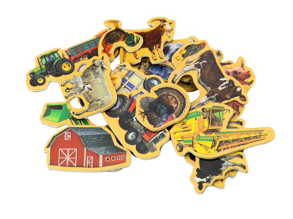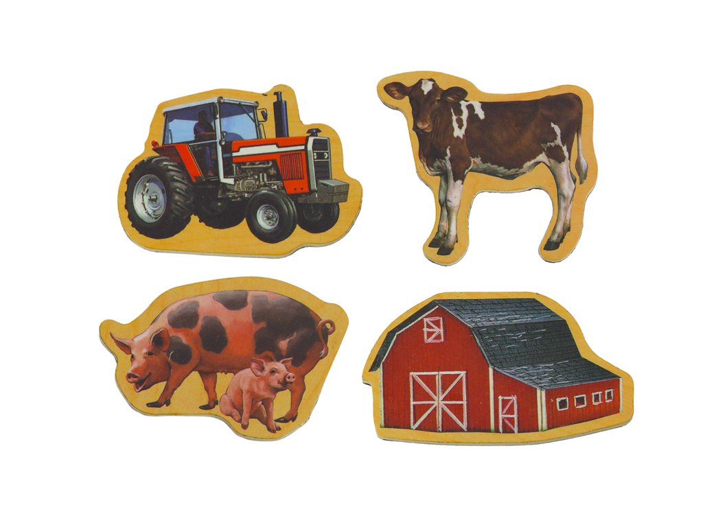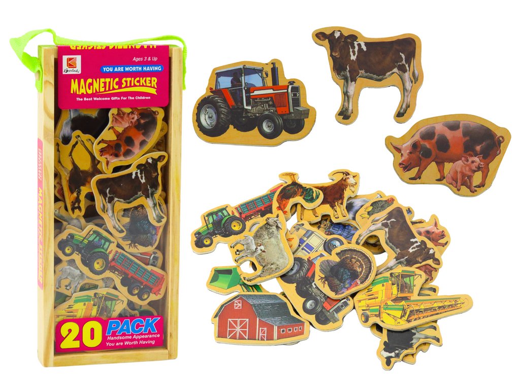 Sada dřevěných magnetů, domácí zvířata, zemědělské stroje, 20 kusů
