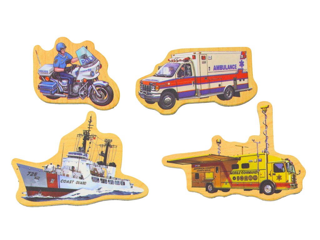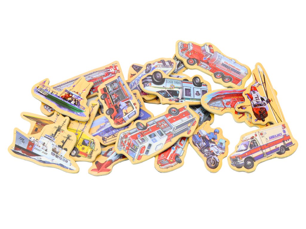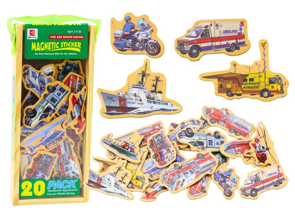 Magnetky jsou vyrobeny z masivního dřeva, což zaručuje jejich odolnost a bezpečnost při hře. Díky svým barevným a atraktivním vzorům magnetky přitahují pozornost dětí a podněcují jejich kreativitu. Dítě může pomocí magnetů vytvářet různé scény, procvičovat koordinaci ruka-oko a rozvíjet jazykové schopnosti pojmenováním jednotlivých vozidel.
