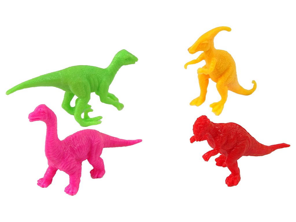 Kromě toho jsou zde čtyři malí dinosauři v různých barvách, které přinášejí další dynamiku a rozmanitost.