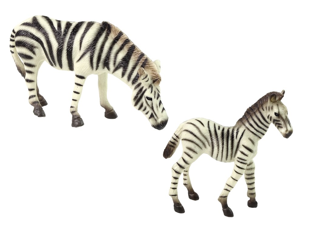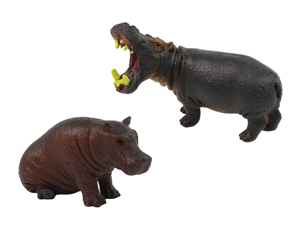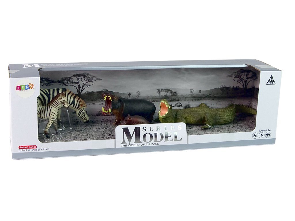 Sada obsahuje 5 figurek zobrazujících zebru a hrochy v různých fázích jejich života, od nejmladších až po dospělá zvířata.