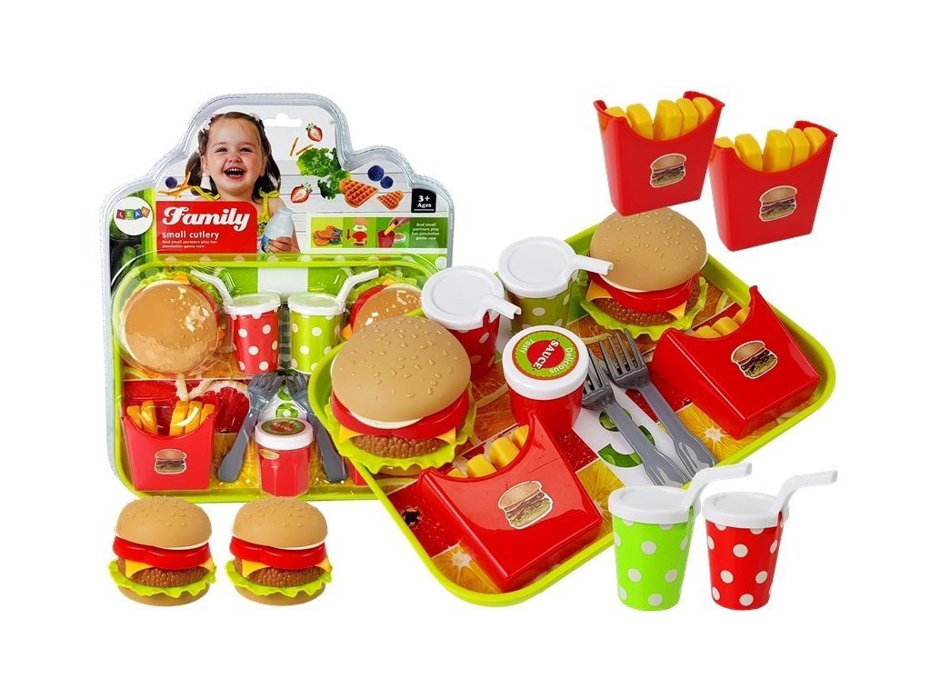 Naše kuchyňská sada obsahuje vše, co vaše dítě potřebuje k ukojení svého hladu. Možná vás při pohledu na tyto lahůdky bude také lákat ke společné zábavě! Sada obsahuje velmi užitečné ingredience, které připraví malý kuchař. Největší zábavou při zábavě je skládání ingrediencí k vytvoření lahodného, zdravého burgeru. Prvky sady umožní dítěti připravovat pokrmy pro dva.