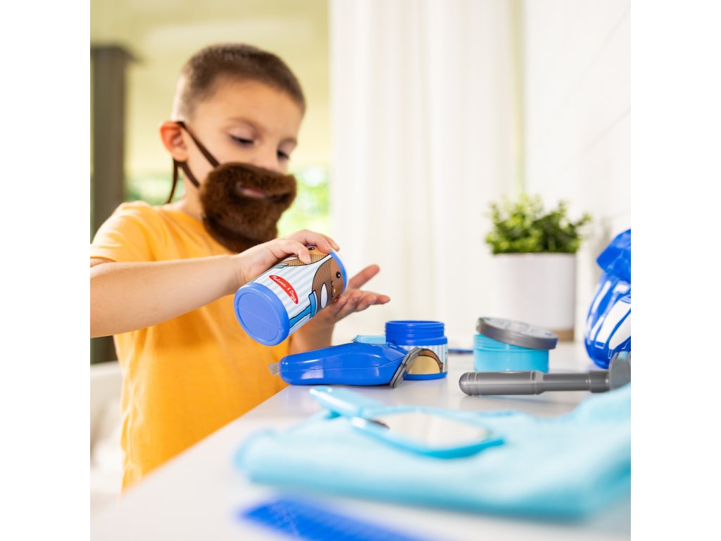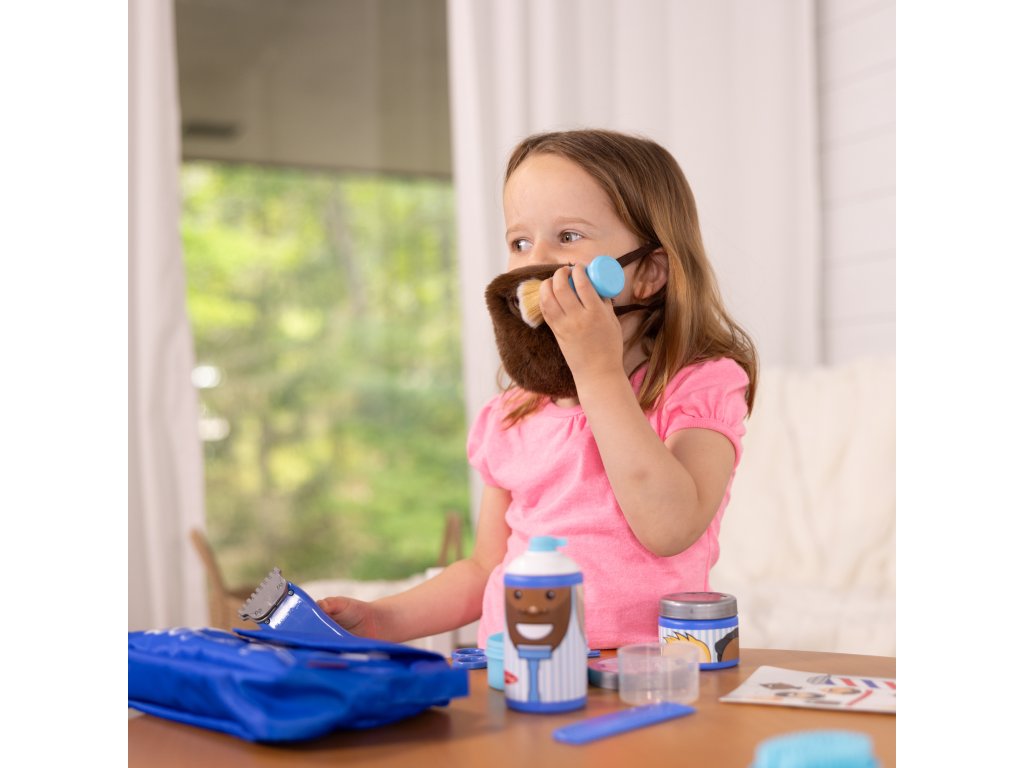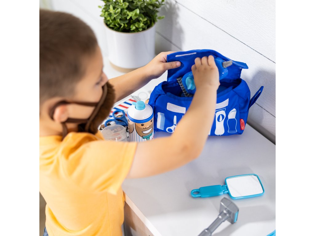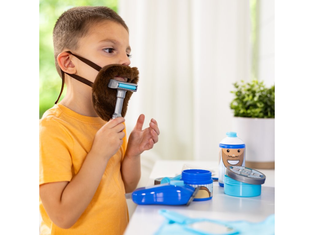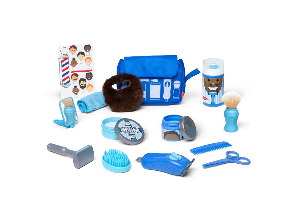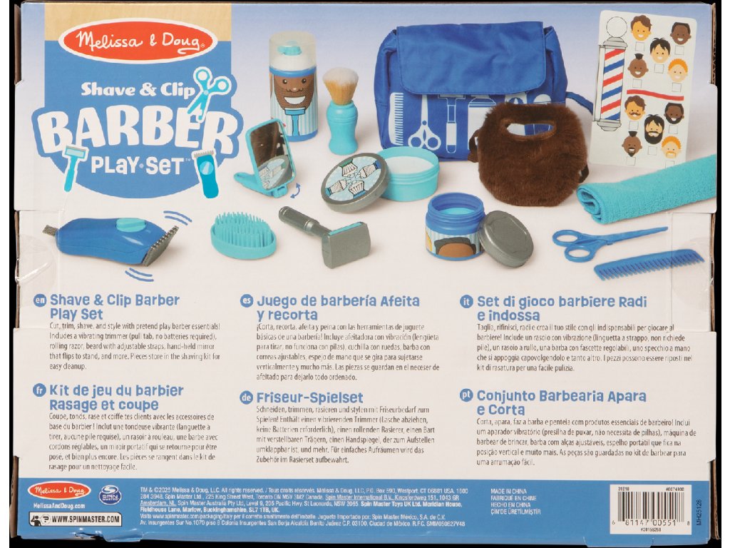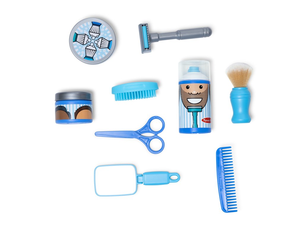Sada obsahuje realistické kadeřnické doplňky , které jim umožňují hrát role v salonu – od tradičního holení po moderní styling. Děti mohou použít kartáč s měkkými štětinami a „pěnový“ krém v misce, zastřihnout si vousy hračkářskými nůžkami a poté dokončit svůj účes zastřihovačem, strojky a pomádou .