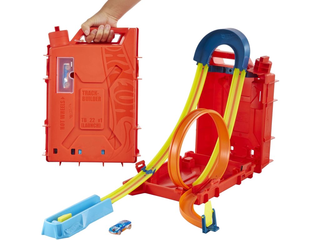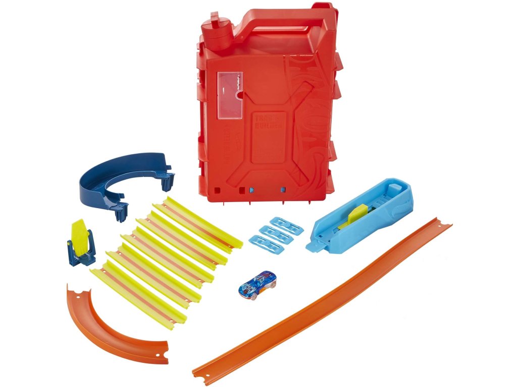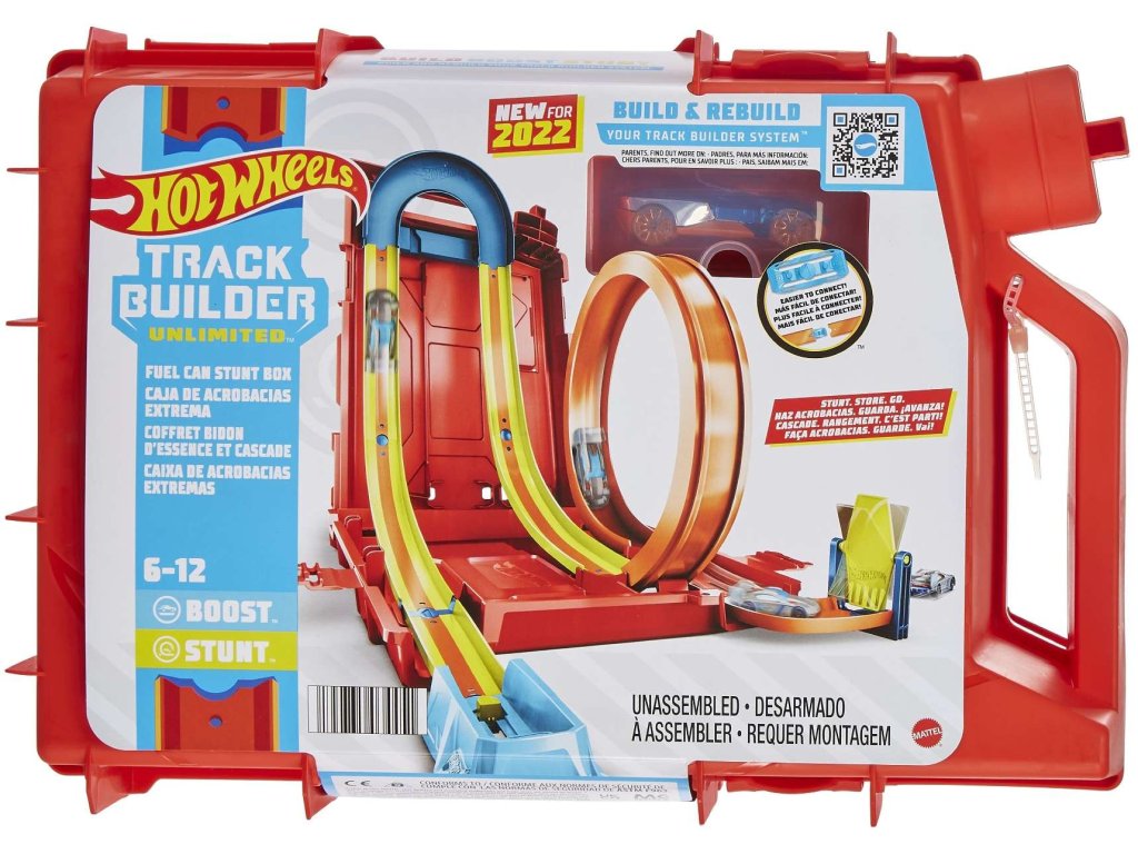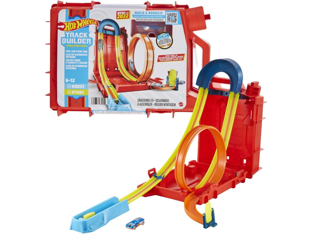 Sada obsahuje Hot Wheels Stunt Box a jedno auto.Krabička je vyrobena ve tvaru kanystru a obsahuje dílky dráhy a příslušenství k sestavení stavby. Krabička umožňuje pohodlné skladování, takže si ji můžete vzít všude s sebou.