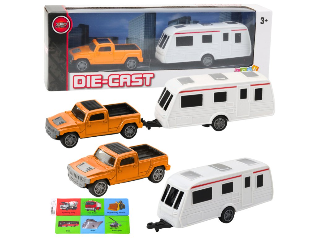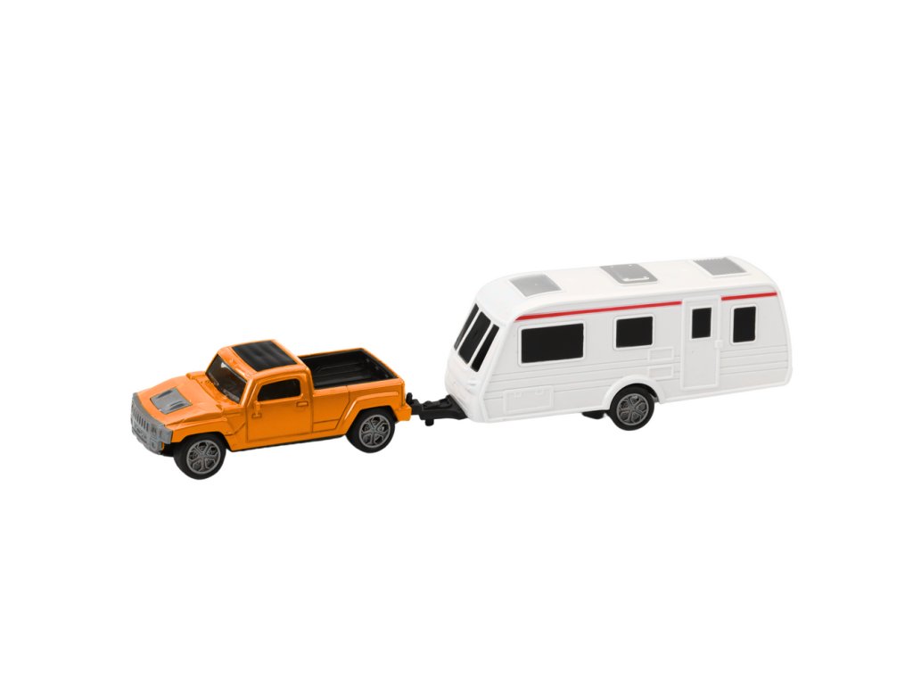 Auto s karavanem je ideální nabídka pro děti, které jsou nadšené motorizací, cestováním a dobrodružstvím. Oranžové terénní auto s kovovou karoserií a kempingovým přívěsem tvoří jedinečnou sadu, která vyniká svým realistickým vzhledem a solidním zpracováním.