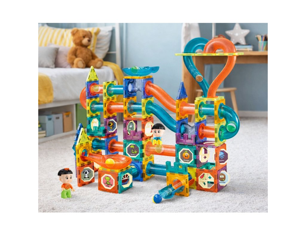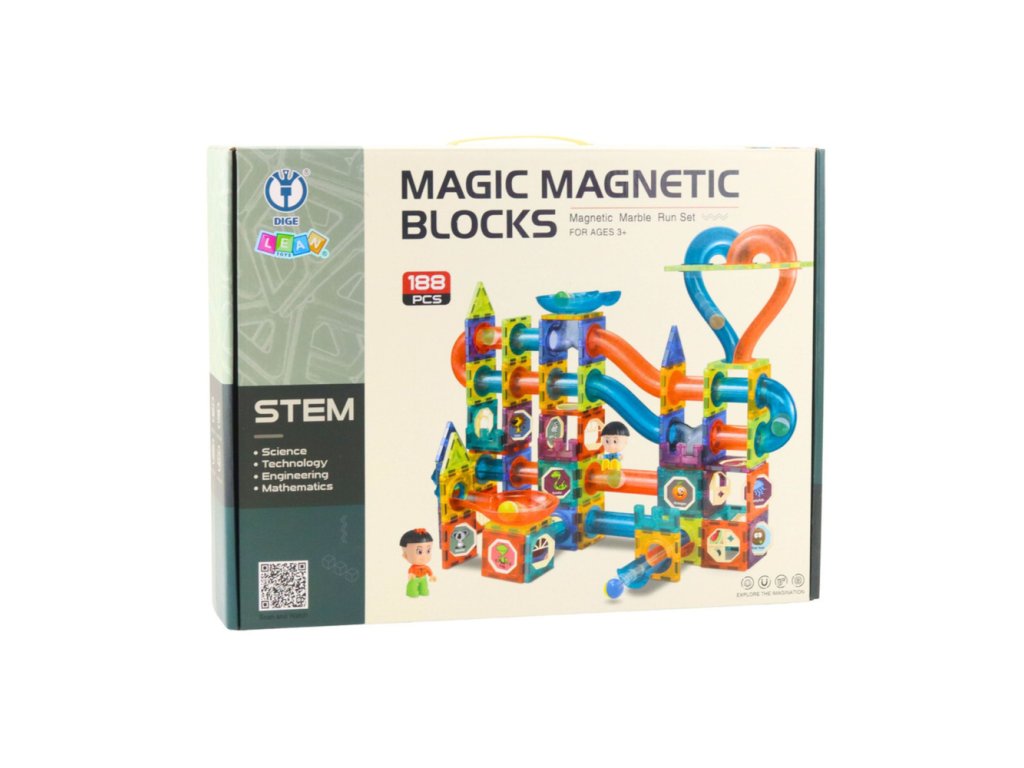 Sada se skládá ze 188 dílků, včetně magnetických bloků, trubek, křivek, ramp a příslušenství pro stavbu složitých mramorových drah. Magnetické spoje usnadňují spojování dílků a umožňují flexibilní úpravy. Tato herní zkušenost podporuje rozvoj logického myšlení, koordinace ruka-oko, manuální zručnosti a dovedností v řešení problémů.