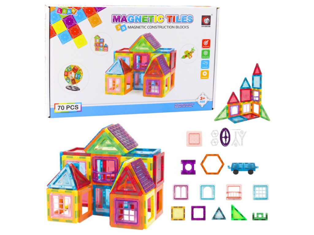Sada magnetických stavebních bloků, vzdělávací, barevná, 70 ks