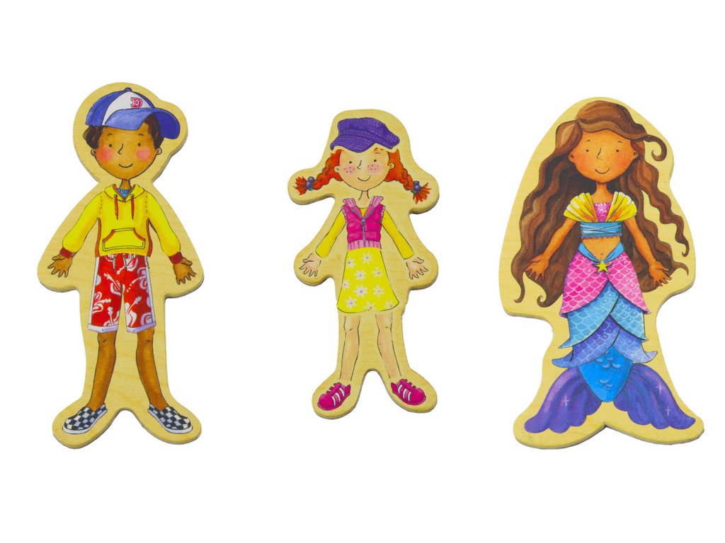 Sada magnetů Dřevěné postavičky v barevných převlecích, 20 kusů