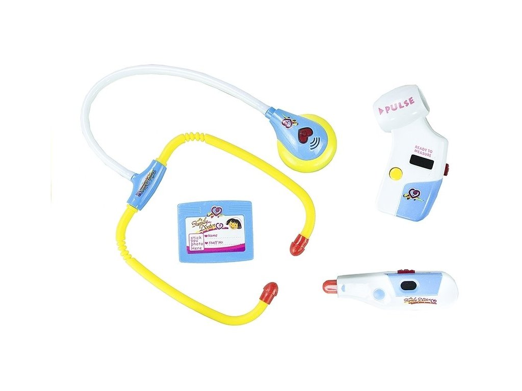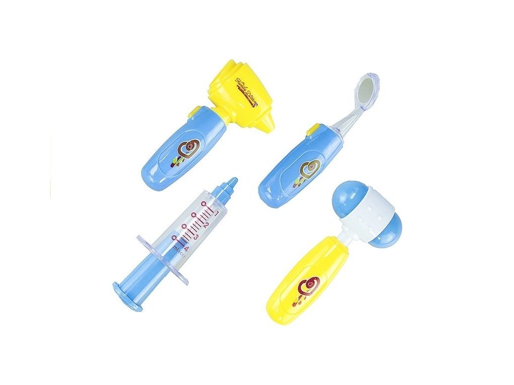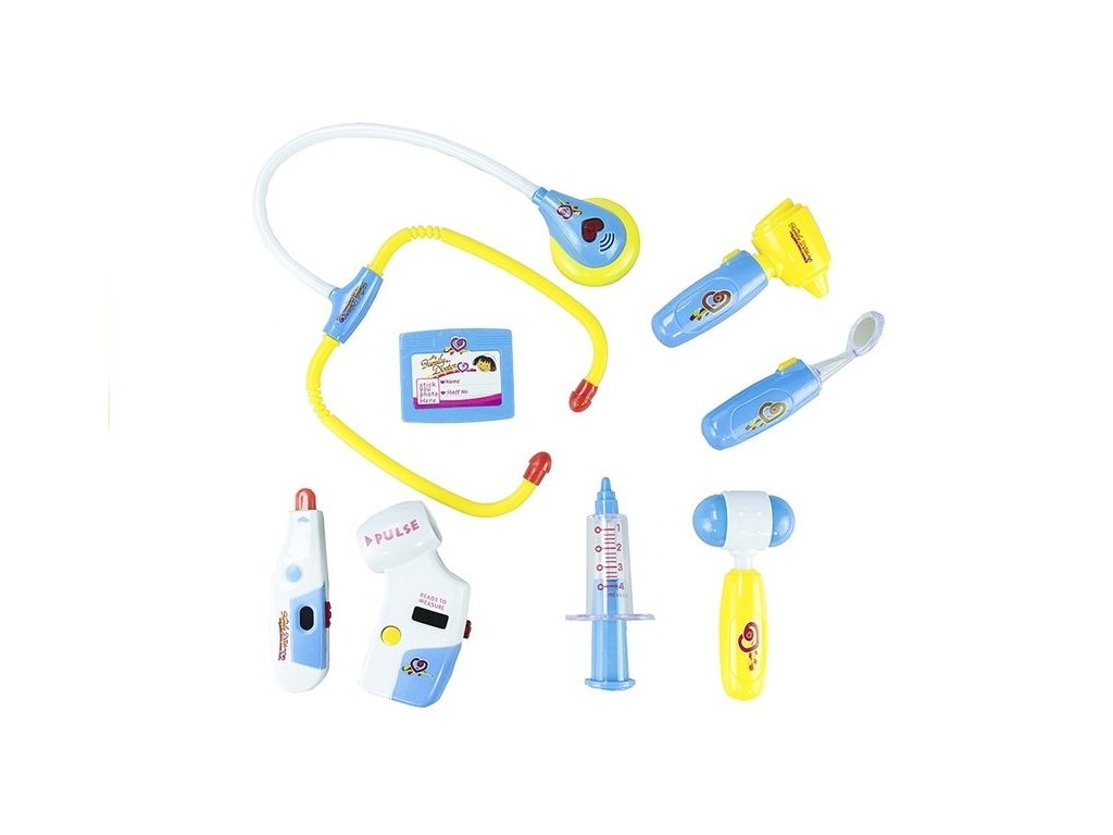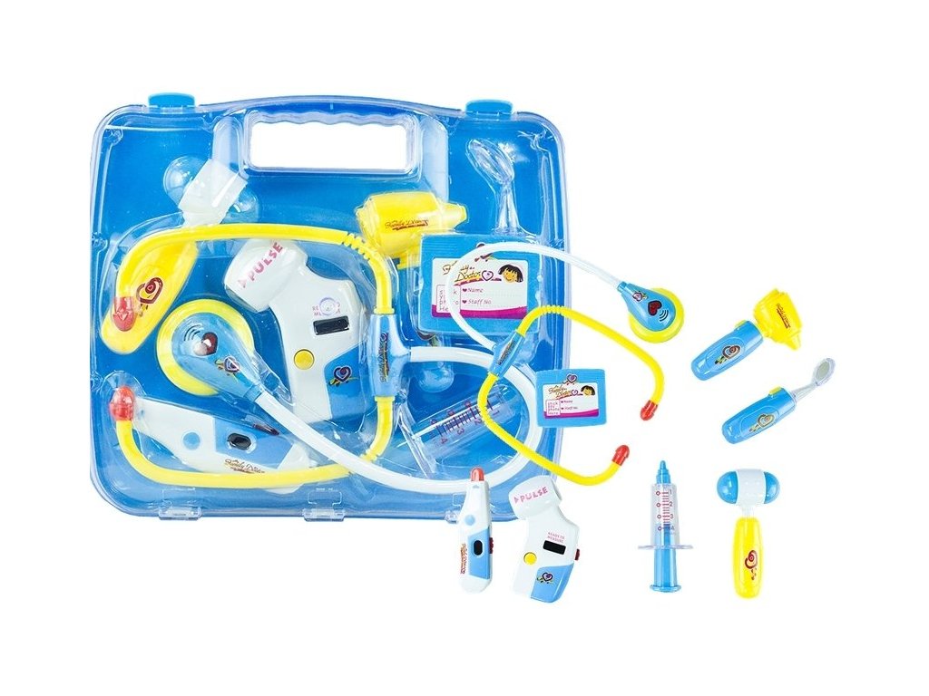 Tato víceprvková sada se skládá ze všech nástrojů, které jsou nezbytné, když pracujete jako lékař. Hračka je vedena v neutrálním zbarvení spojující modrou, bílou a žlutou barvu, díky čemuž bude perfektním předmětem pro sourozence - pro holčičku i pro chlapečka.