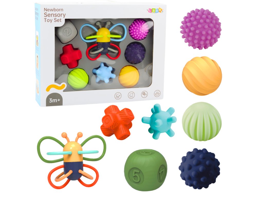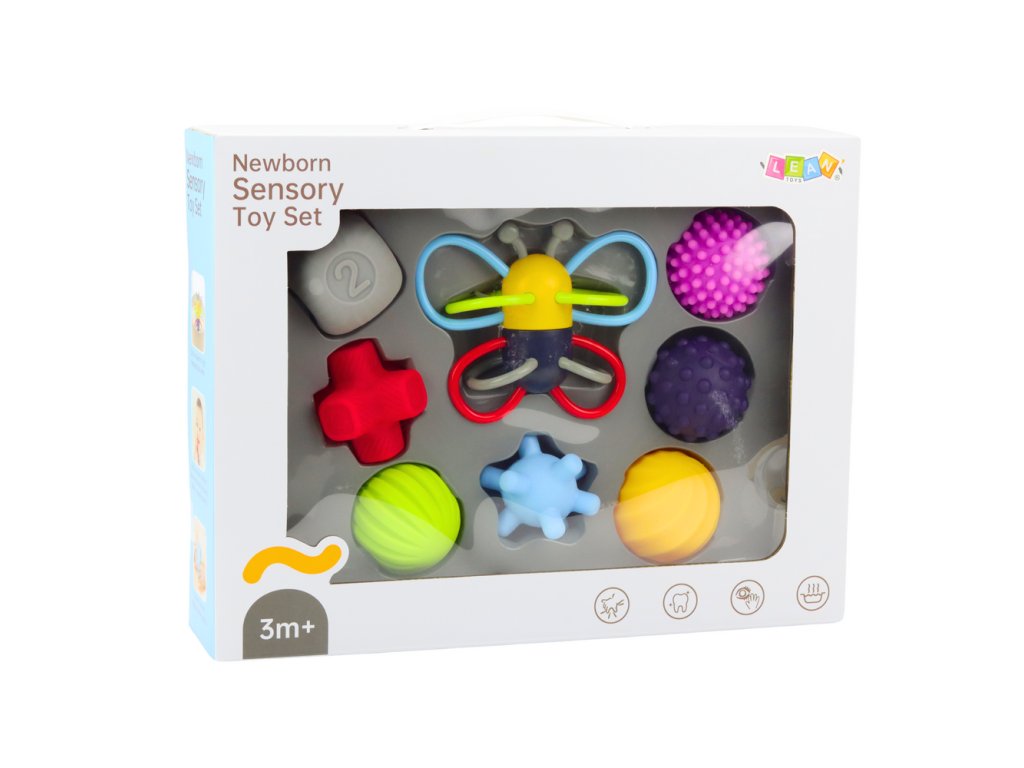 Senzorický set pro kojence je pečlivě navržený set hraček podporujících vývoj dítěte od 3. měsíce života. Sada byla vyvinuta s ohledem na potřeby nejmenších dětí, pro které jsou svět především smyslové podněty. Skládá se z různých barevných prvků s různými texturami, tvary a funkcemi – všechny jsou navrženy tak, aby stimulovaly dotek, zrak a koordinaci oko-ruka. Hračky pomáhají při učení se uchopovat, objevovat nové povrchy a tvary a podporují rozvoj jemné motoriky a smyslové integrace.