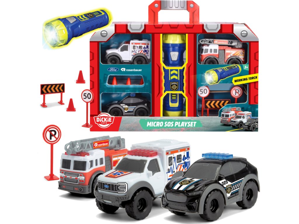 Sada Emergency Vehicle Set byla vytvořena široce známou a respektovanou značkou Dickie Toys .
