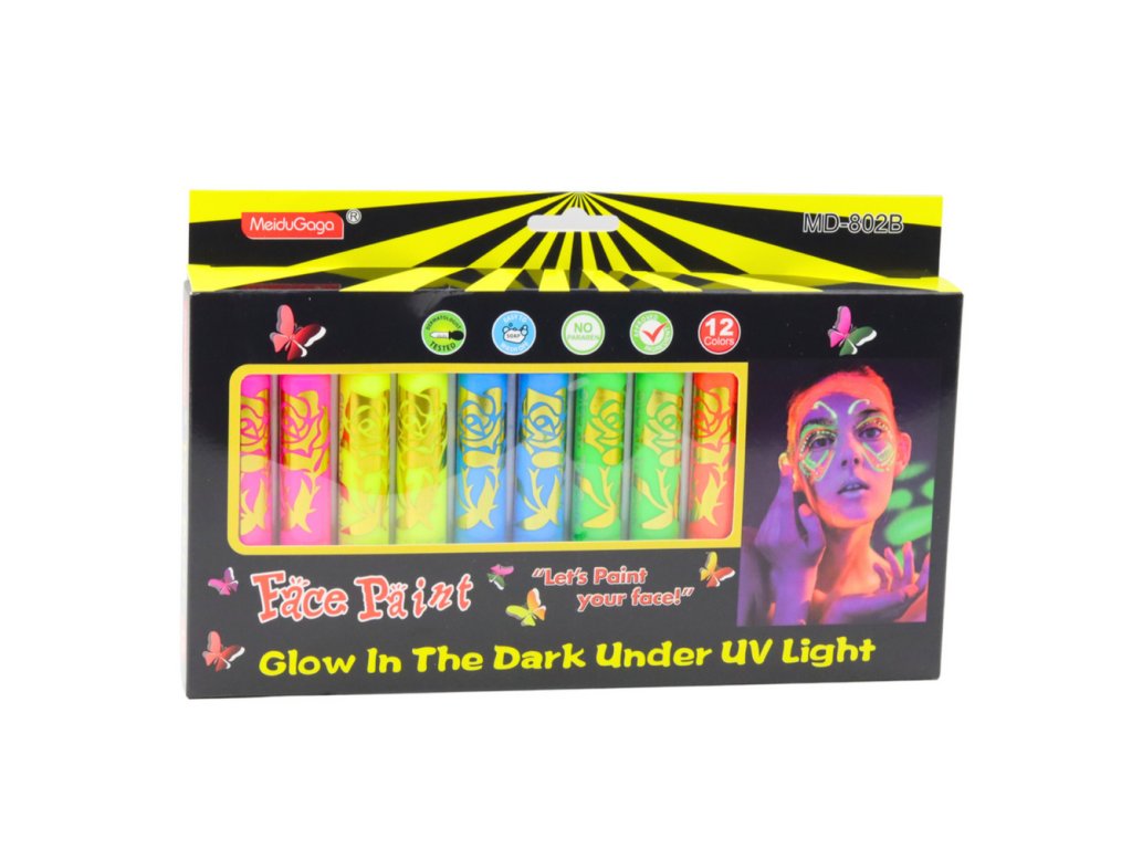 SADA NEONOVÉHO MALOVÁNÍ NA OBLIČEJ – 12 KUSŮ