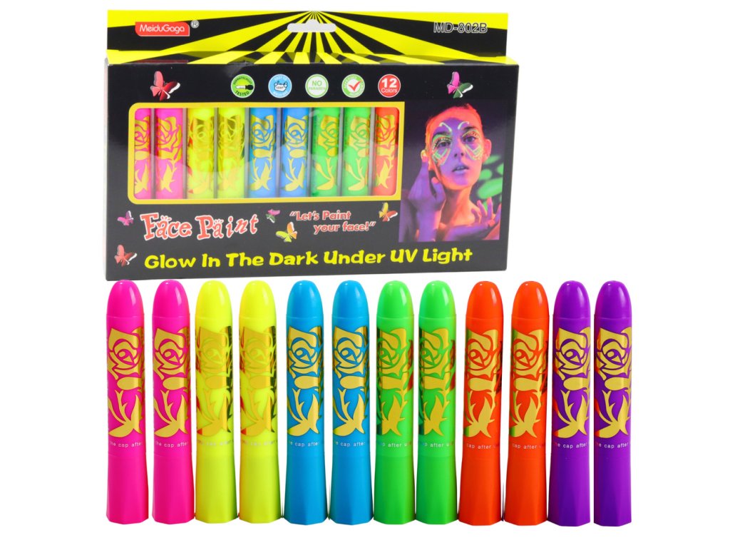 Sada na malování obličeje neonové UV fluorescenční pastelky 12 ks