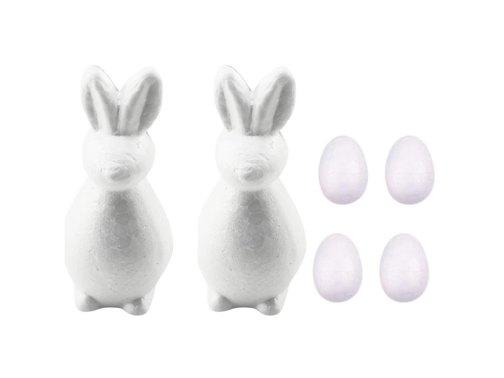 Sada obsahuje dva polystyrénové zajíčky a čtyři polystyrénová vajíčka. Barvy ve čtyřech intenzivních barvách a štětec obsažený v sadě umožňují snadné a přesné malování. Figurky jsou vyrobeny z lehkého polystyrenu, jsou odolné proti poškození a dokonale přijímají barvu, díky čemuž je zdobení čistým potěšením.
