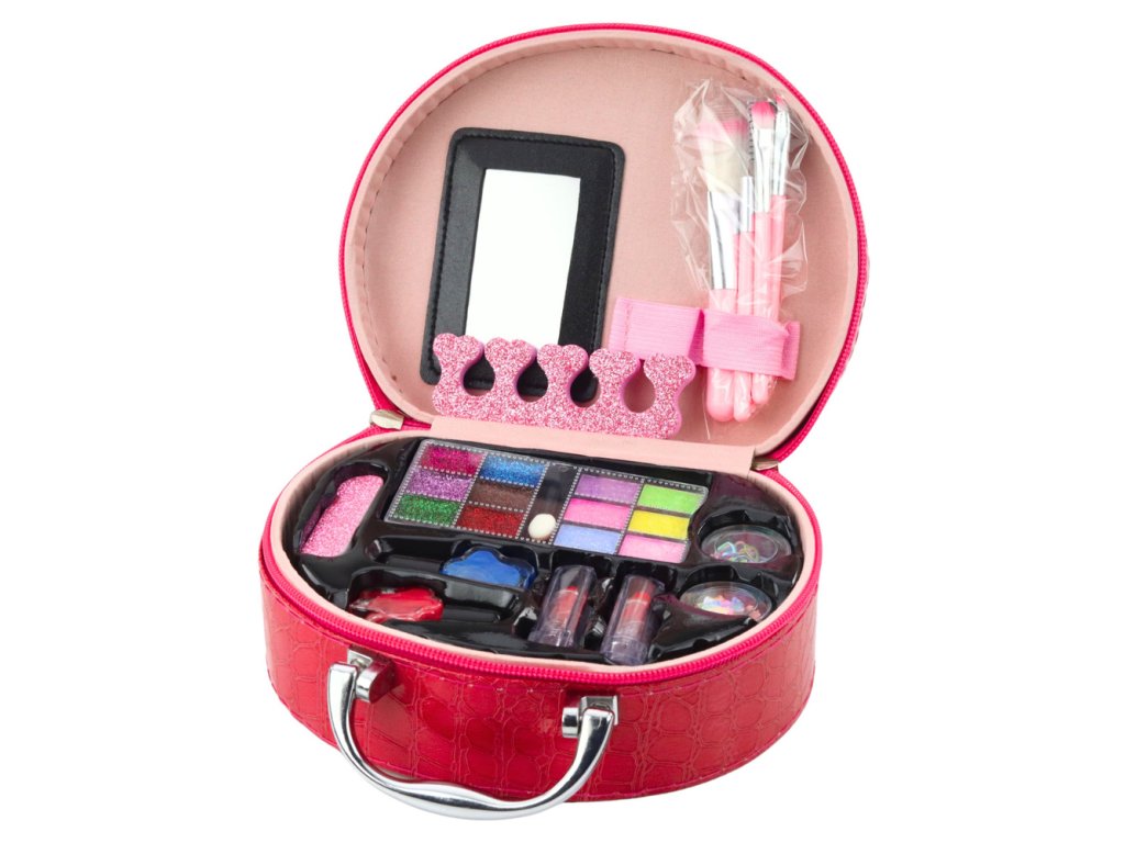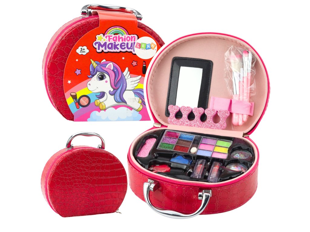 Tato dětská kosmetická sada je perfektní volbou pro malé nadšence do líčení a stylingu. Je uložena v elegantní červené kosmetické taštičce s lemováním z materiálu podobného kůži, což jí dodává stylový a moderní vzhled.