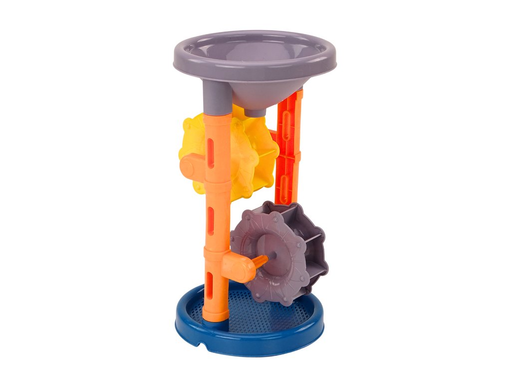 Sada hraček na písek s mlýnkem je nezbytnou výbavou každého malého plážového nadšence nebo milovníka pískovišť. Ústředním prvkem je mlýnek se dvěma kolečky, který má dvojí funkci:na jedné straně má sítko na prosévání písku a na druhé nálevku.
