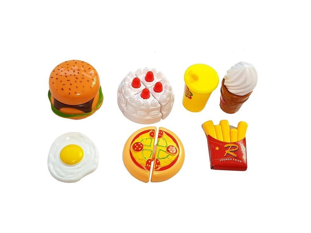 Naše sada je další atrakcí při hraní obchodu nebo restaurace pro vaše dítě. Každý výrobek je dokonalou reprodukcí skutečného jídla, díky které se malý kuchař naučí názvy a jejich vzhled. Živé a syté barvy pomohou rozvíjet mysl vašeho dítěte, flexibilitu a funkce rukou a kreativní myšlení.