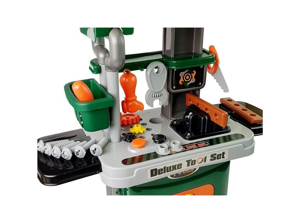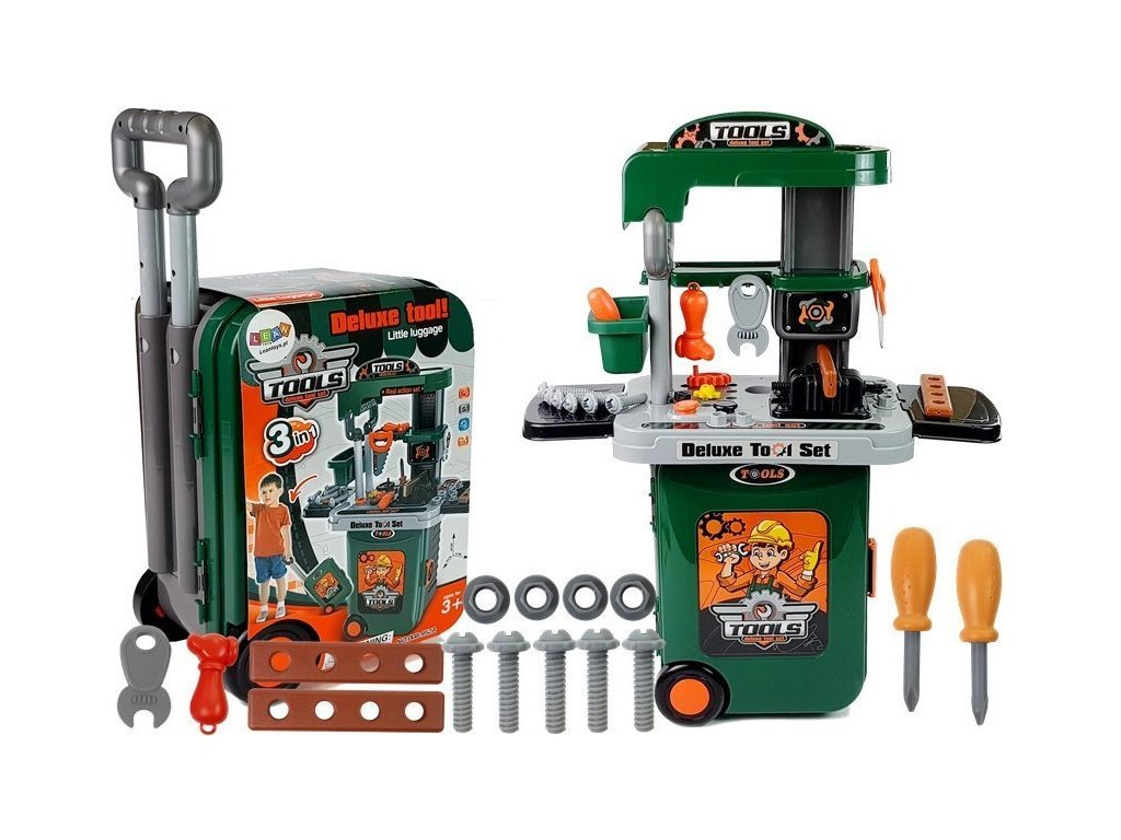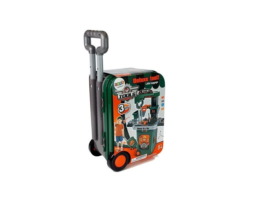 Pokud vaše dítě rádo pomáhá tátovi s jeho řemesly, bude to pro něj perfektní přenosná sada. Dílna v kufru je perfektní věc, teď si ji může vzít všude s sebou. Prodloužitelná rukojeť a kolečka na zadní straně vám umožní tahat za sebou. Po otevření kufru jsou uvnitř všechny prvky pro vytvoření vlastní dílny. Nezabere moc místa. Největší výhodou setu je velké množství prvků, díky kterým si dítě bude moct šťourat a opravovat mnoho hraček.