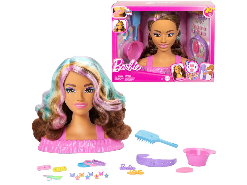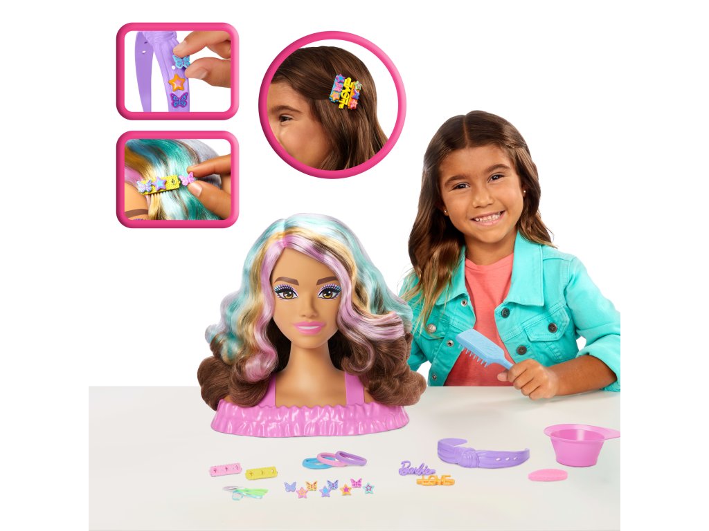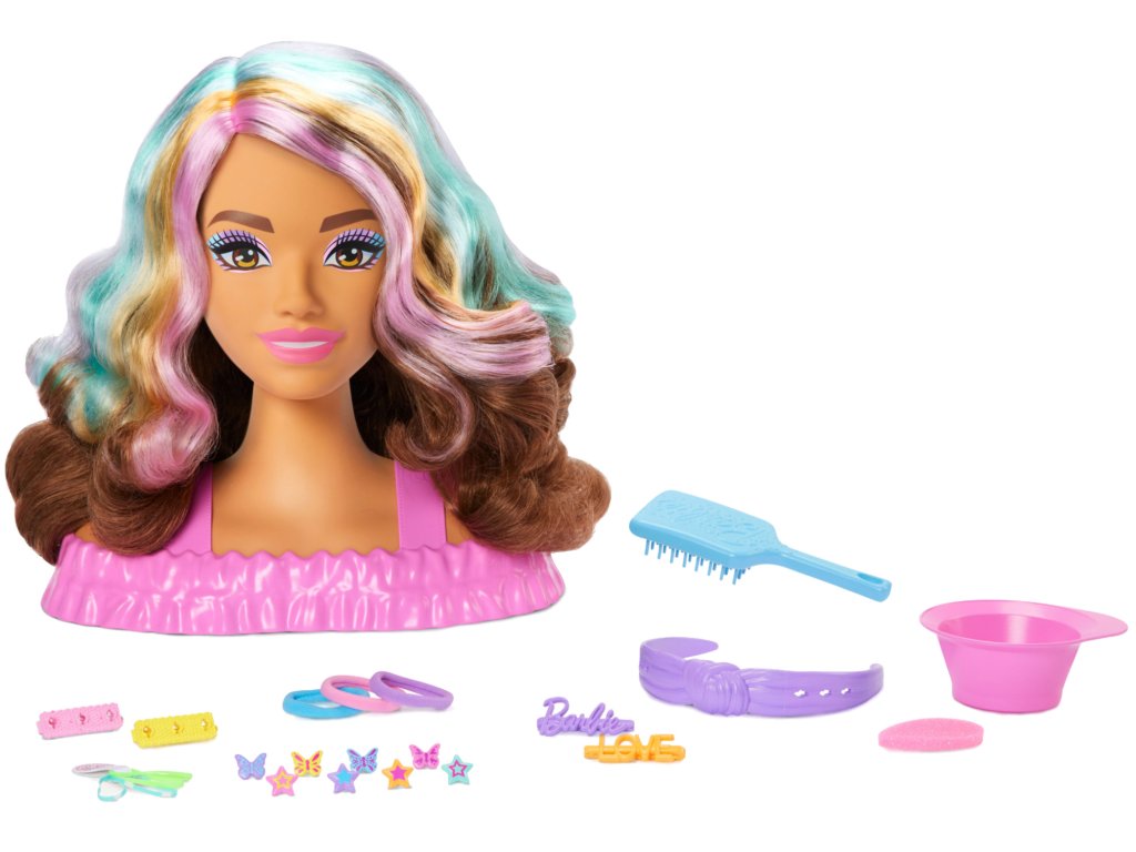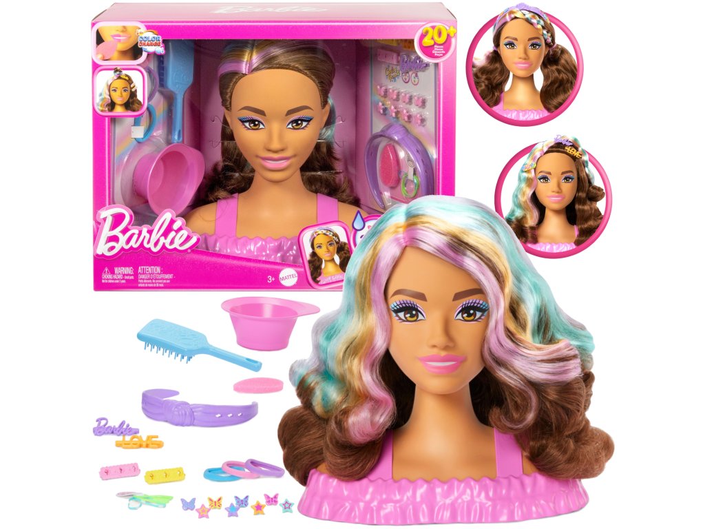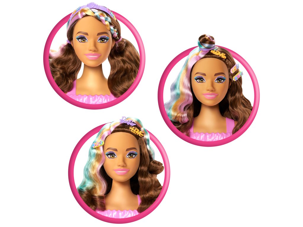 - 1 stylingová hlava Barbie s pastelovými odlesky,