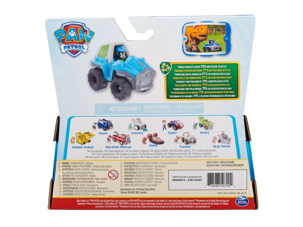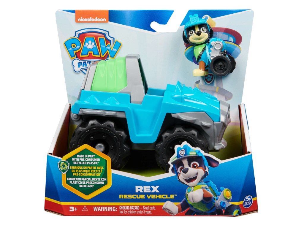 Sada Paw Patrol 2v1 Rex: vozidlo, auto, autíčko + figurka ekologického psa