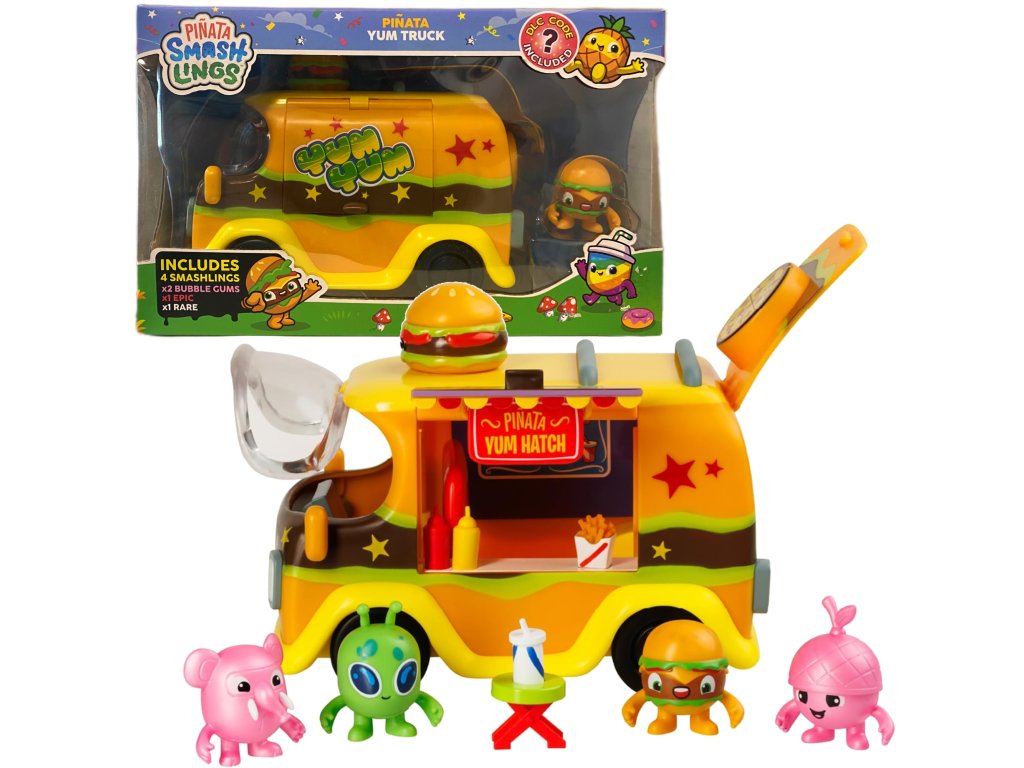 Připravte se na chutné dobrodružství s oficiální herní sadou Yum Truck! Propojte svět Piñata Smashlings s virtuálním vesmírem a staňte se součástí sladkého šílenství.