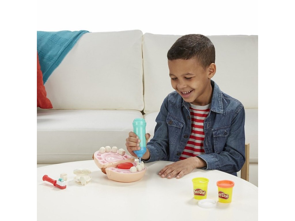 Mini zubařská sada Play-Doh E4919Děti sice návštěvy zubaře moc neužívají, ale hraní si na zubaře milují! Klasická mini zubařská sada Play-Doh je skvělá kreativní aktivita, která vyvolá spoustu smíchu a pomůže dětem představit koncept péče o zuby. Díky kompaktním rozměrům je ideální pro použití doma i na cestách. Děti si mohou tvarovat zuby, „ošetřovat kazy“ vrtačkou a nanášet zubní pastu na zubní kartáček, a přitom se učí základy ústní hygieny.
