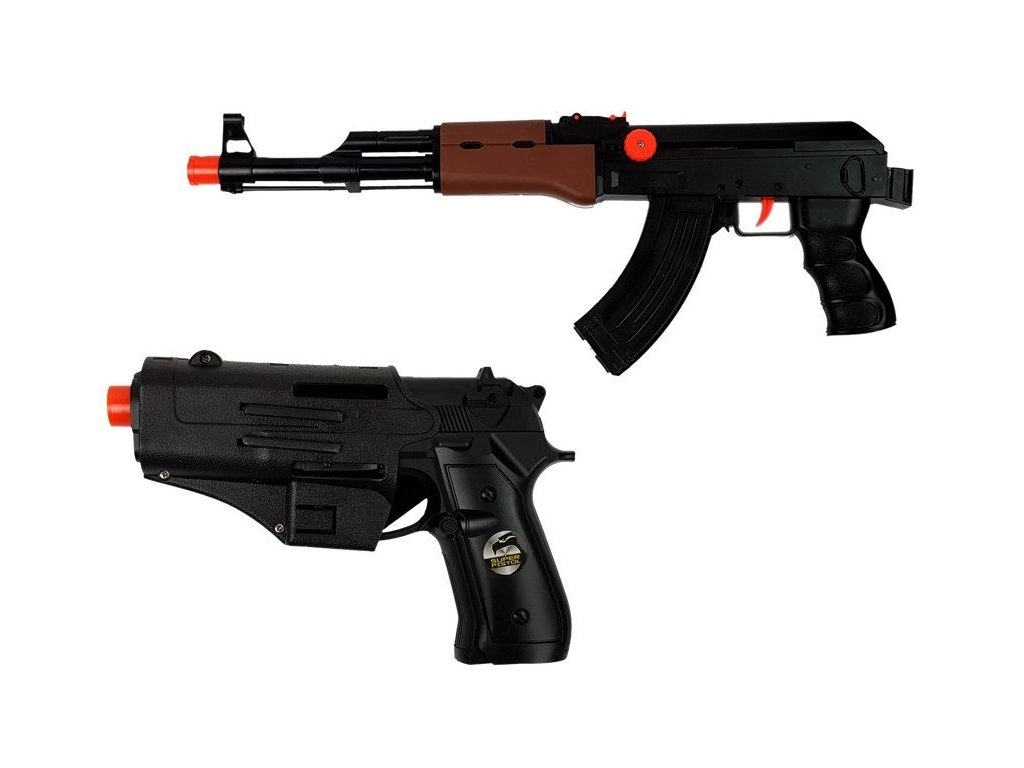 Sada pro mladou uniformu se skládá z mnoha prvků. Všechny jsou vyrobeny z kvalitního plastu, který zaručí, že budou dítěti dlouho sloužit. Vše je v černé barvě, pouze zbraně mají oranžové prvky. Puška vydává rychlopalné zvuky, stačí zatáhnout za jezdec a stisknout spoušť. Pokud chce vaše dítě udělat přesný výstřel, stačí vzít do ruky menší pistoli, po zmáčknutí spouště uslyšíte jediný výstřel. Žádný zloděj neuteče! Určitě se rozvine dětská fantazie.