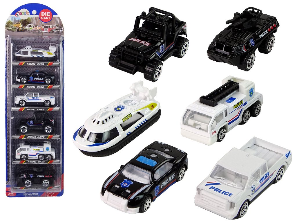 Celá sada obsahuje 6 policejních vozidel, vaše dítě bude připraveno na jakoukoli akci, ať už v terénu, kde je potřeba džíp, nebo se možná u jezera odehraje zločin, ke kterému bude motorový člun sloužit.
