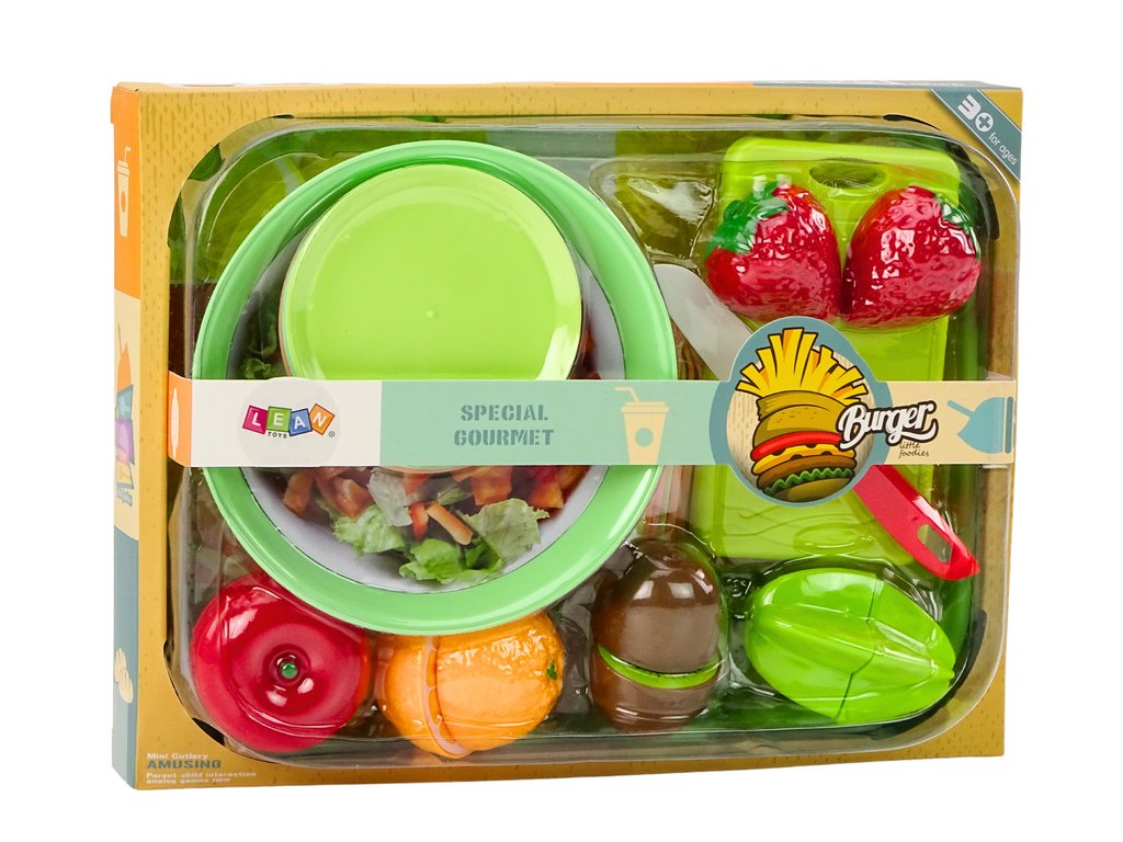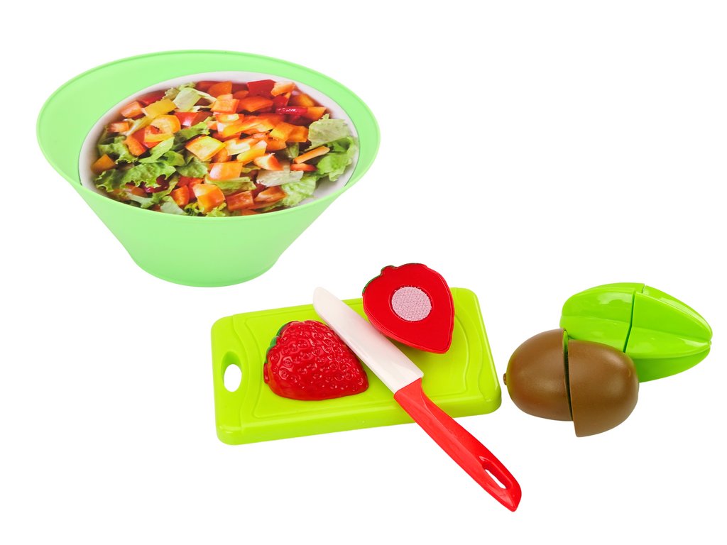 Sada hraček na krájení salátu a ovoce je ideální volbou pro děti, které si rády hrají na vaření a přípravu jídla. Sada se skládá z 25 prvků. Velký, prostorný a praktický tác, ideální pro servírování pokrmů. Mísa na salát naplněná imitací čerstvé zeleniny, která podporuje hru a učení o zdravé výživě.