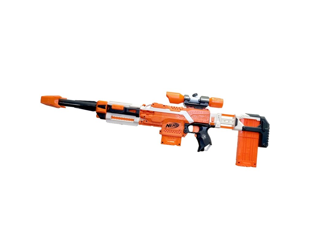Pokud chcete ze svého Nerfa udělat skutečnou odstřelovací zbraň, je nezbytné pořídit si dlouhou odstřelovací hlaveň. Spolu se zaměřovačem a dvojnožkou získáte odstřelovací pušku, se kterou pro vás žádný cíl nebude problém. Hlaveň se hodí ke všem odpalovačům Nerf, které mají možnost ji připojit.