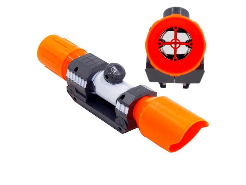Odstřelovačský zaměřovač svým vzhledem připomíná dalekohled a díky univerzálnímu nástavci jej budeme moci připevnit k jakémukoli odpalovacímu zařízení Nerf s taktickou lištou. Zaměřovač je vybaven dvěma křížovými stupnicemi.