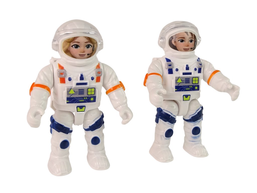 Sada obsahuje dvě realistické figurky astronautů. Mají bílé obleky s oranžovými akcenty, helmy s průhlednými kryty a precizně zpracované obličeje. Zdá se, že astronauti jsou na svou misi ve vesmíru připraveni.