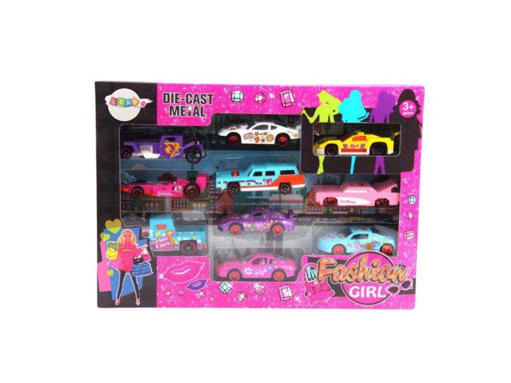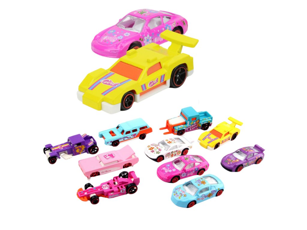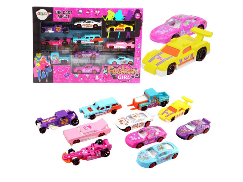 SADA 10 KOVOVÝCH AUT V DÍVČÍCH BARVÁCH