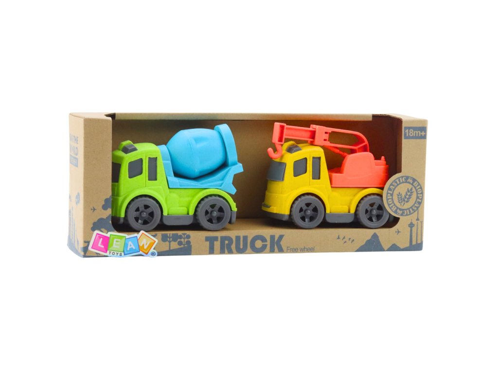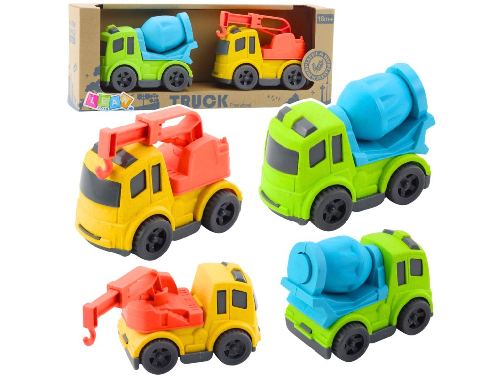 Sada stavebních vozidel – auta, domíchávač, náklaďák s hákem, BIO plast